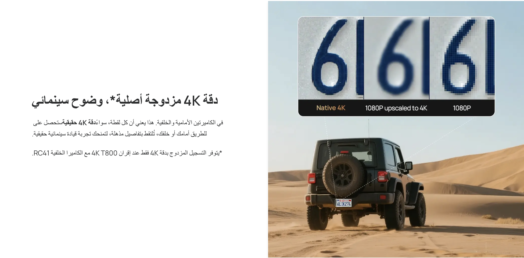 - احصل على لقطات عالية الوضوح مع كاميرا أمامية وخلفية بدقة 4K وكاميرا داخلية بدقة 1080 بكسل، رؤية واضحة لـ لوحات السيارات، الإعلانات، الشوارع، كل التفاصيل الدقيقة التي قد تحتاج إليها، مع رؤية داخلية لمقصورة السيارة.