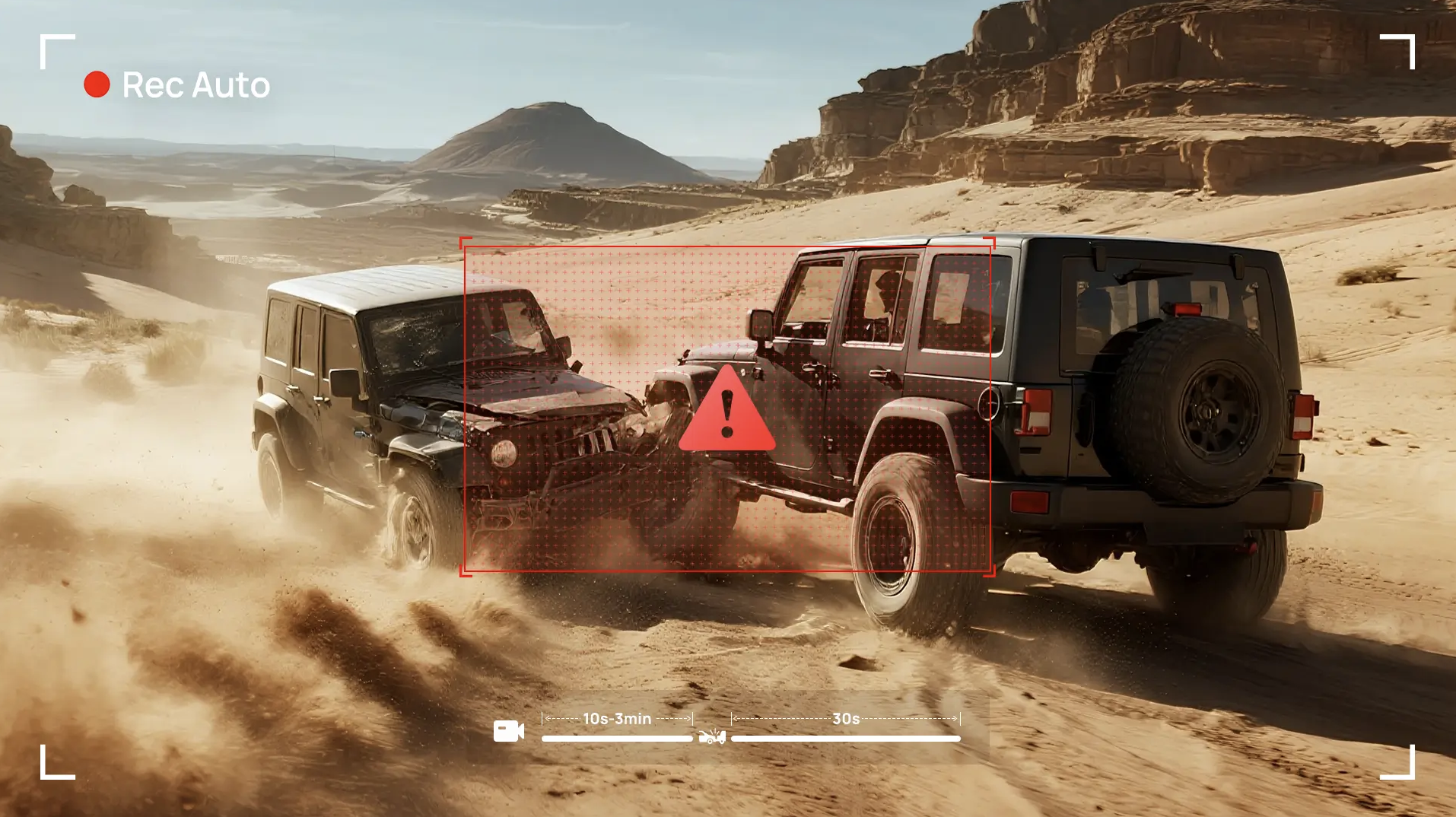 - تسجيل طارئ محسن أكثر من 10 ثواني وحتى 3 دقائق، يلتقط ما قبل الاصطدام ولحظة الاصطدام و30 ثانية بعد الاصطدام ما يضمن تسجيل جميع اللقطات الحاسمة.