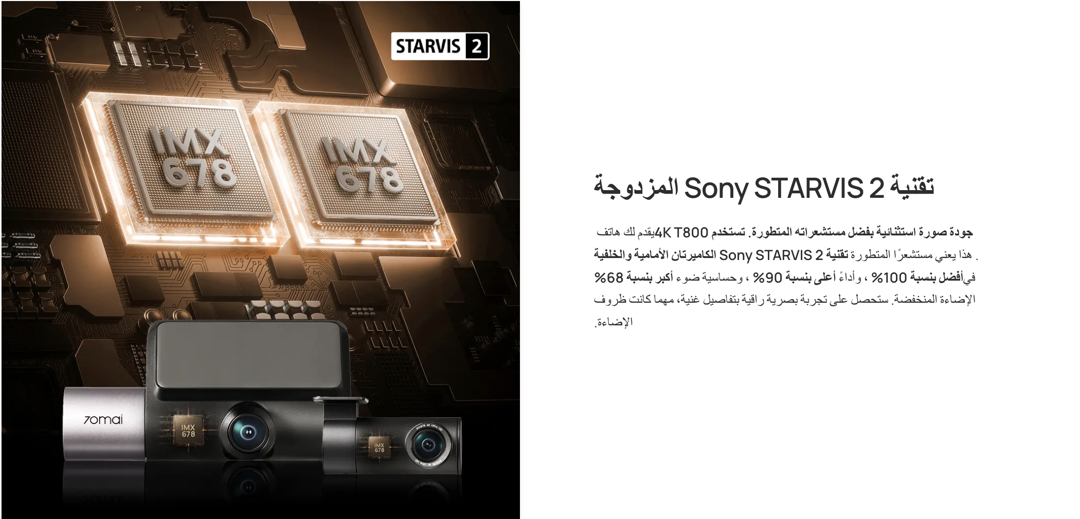 - تصوير بدقة فائقة بمستشعرات STARVIS 2 IMX678 من Sony.