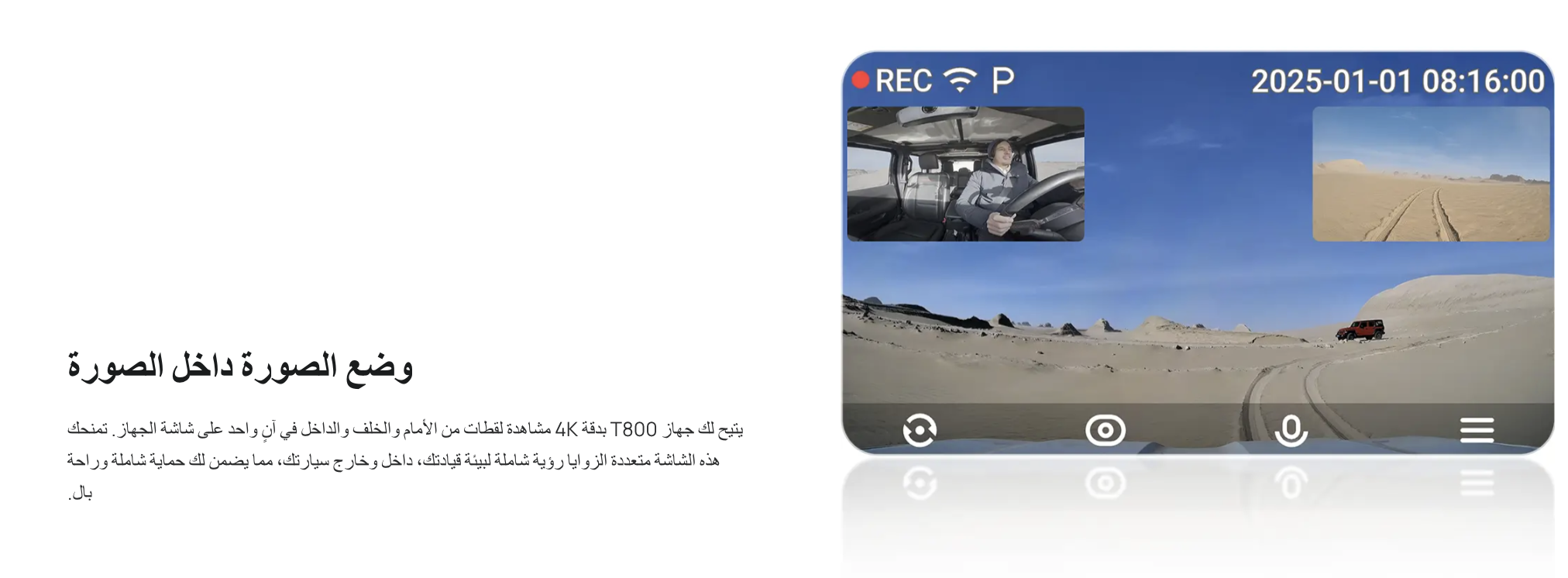 - كاميرا سيارة داش كام بالمكثف 70mai T800 أمامية وخلفية وداخلية بنظام GPS