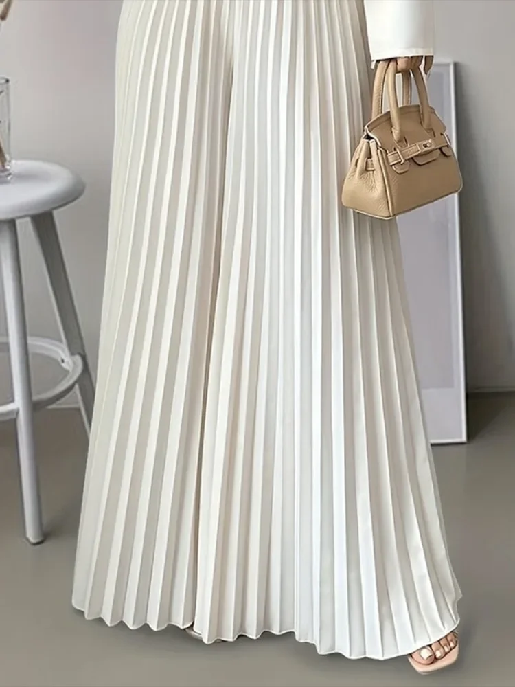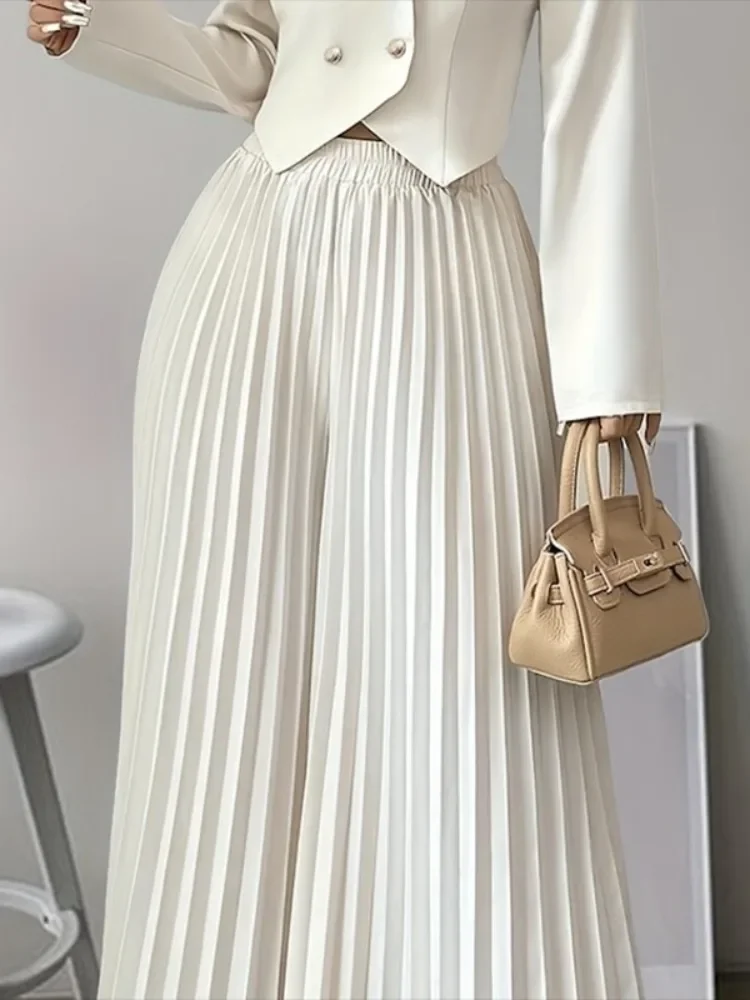 Freeacy المرأة مطوي تنورة واسعة الساق السراويل 2025 الصيف عادية مرونة الخصر بنطلون ملابس الحفلات أنيقة فضفاضة تناسب قيعان