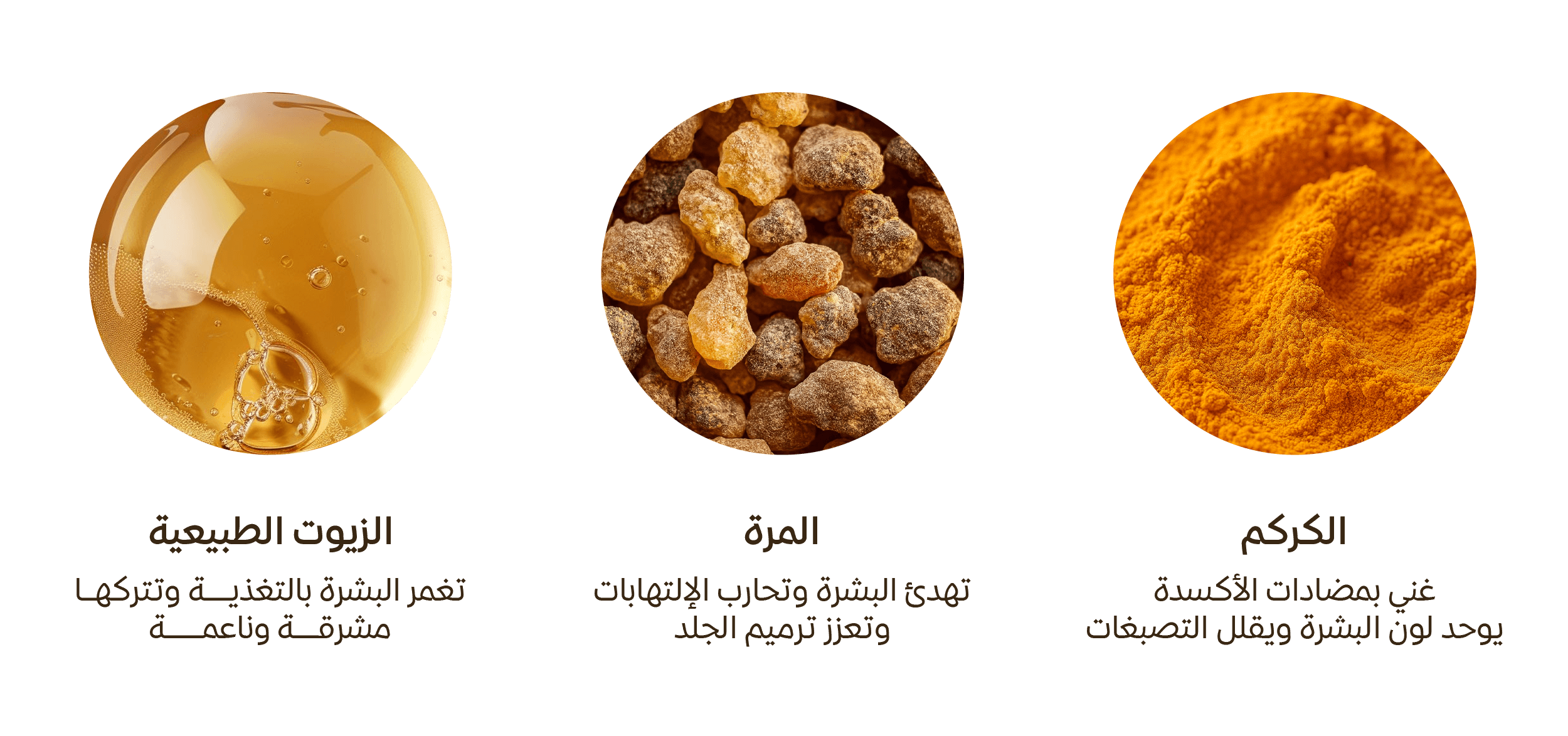 مستخلصة من جذور نبات الكركم الطبيعي الذي يمنع إنتاج الميلانين، الصبغة المسؤولة عن البقع الداكنة.
