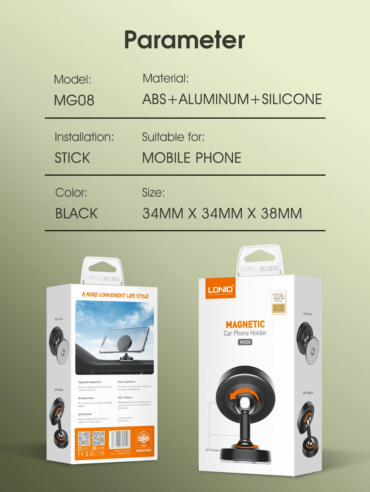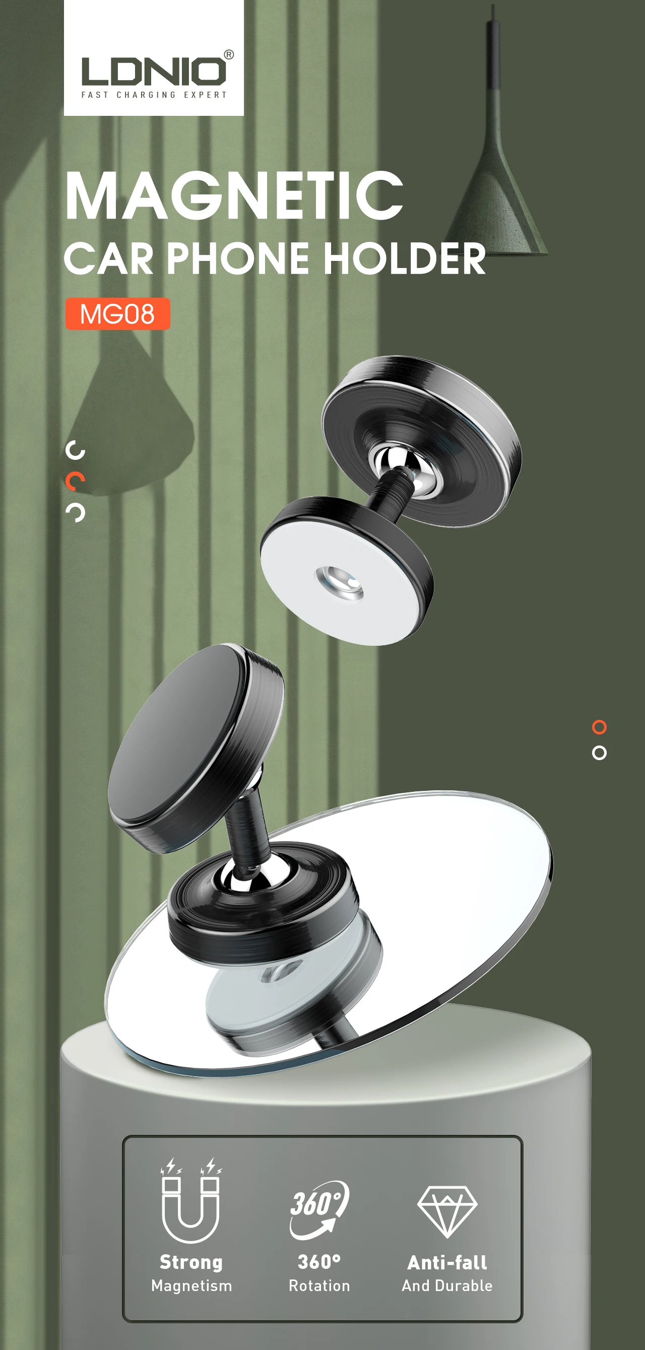 LDNIO حامل جوال مغناطيسي اسود = 2021040300125