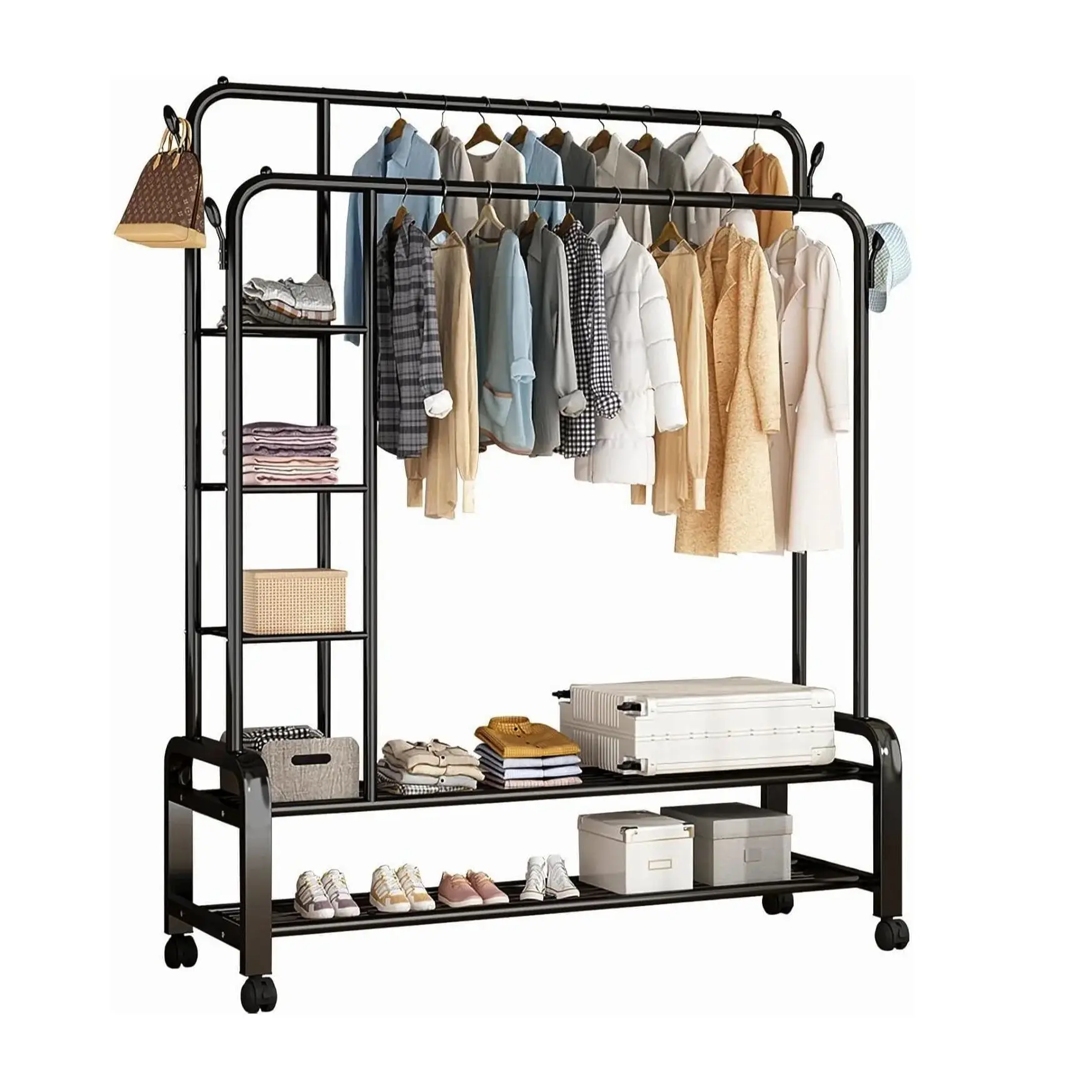 【سعة كبيرة】يحتوي رف الملابس هذا على قضيبين للتعليق، قادران على حمل أكثر من 20 قطعة.وتتضمن أيضًا رفين للتخزين وثلاثة رفوف، تمتد من 11.8 إلى 49.6 بوصة.يمكن لقضبان الملابس هذه تخزين الملابس والأحذية والحقائب والمزيد.مع 4 خطافات للقبعة وعمود وشاح واحد، توفر مساحة تعليق إضافية للقبعات والحقائب والإكسسوارات.