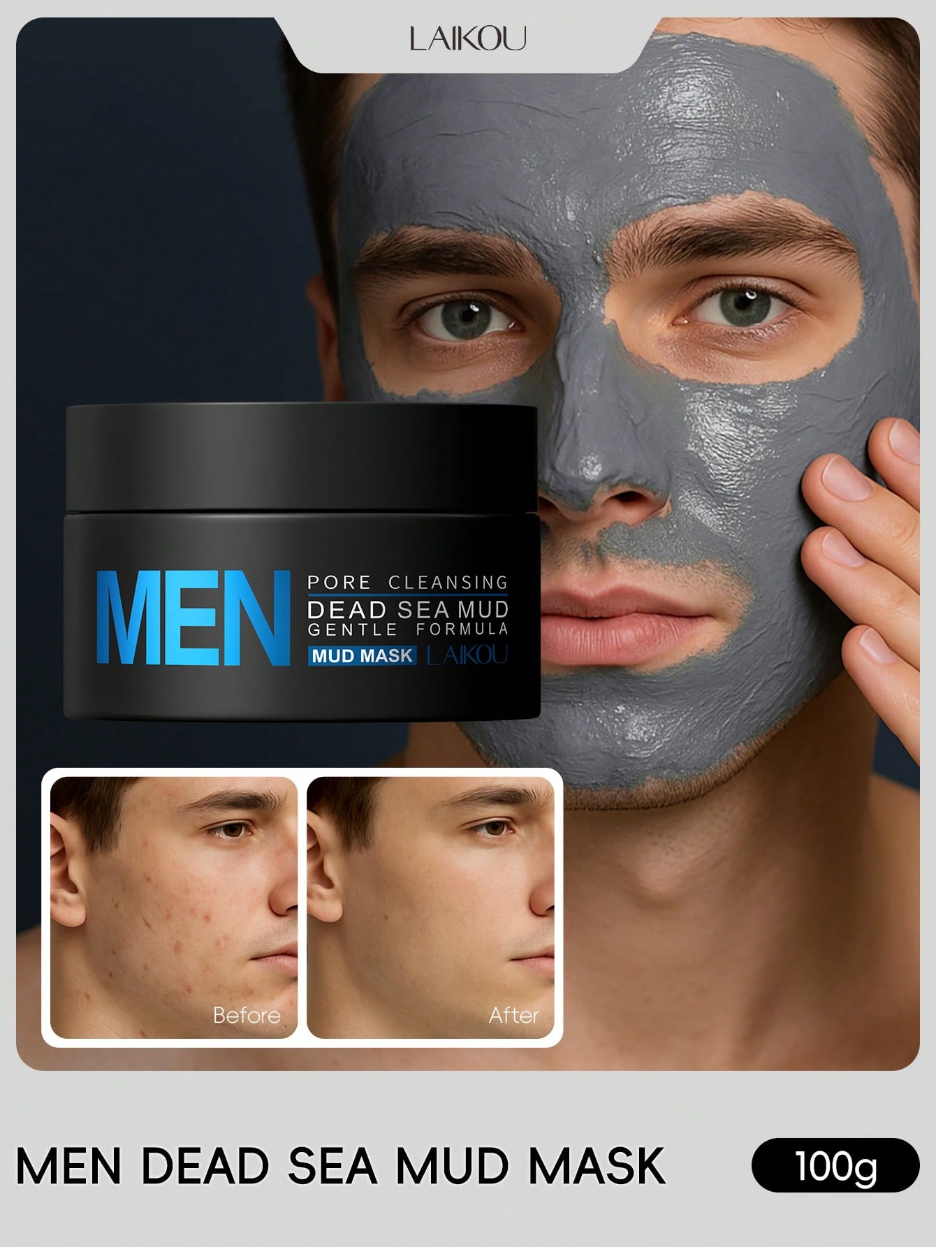 - قطعة قناع الطين الميت من لايكو لتنظيف المسام للرجال، 100 جرام قناع وجه للرجال للتحكم بالزيوت وتحسي