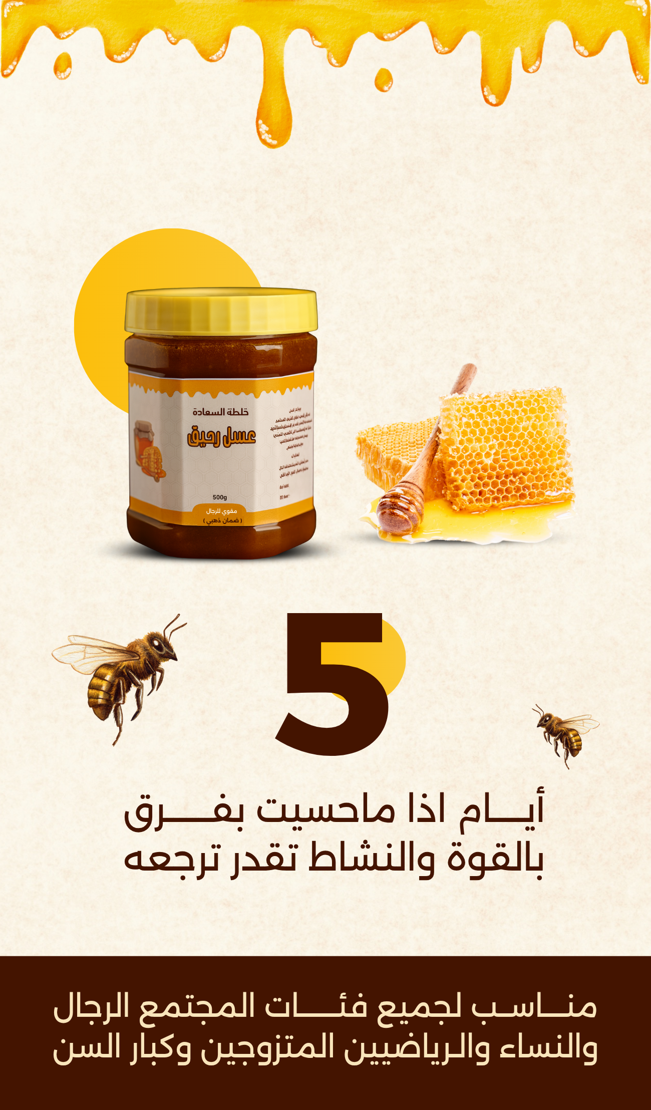 مكوناتها عسل السدر البلدي عسل المجرى البلدي عسل الطلح البلدي الجنسنج العكبر غذاء الملكات حبوب اللقاح طلع النخيل