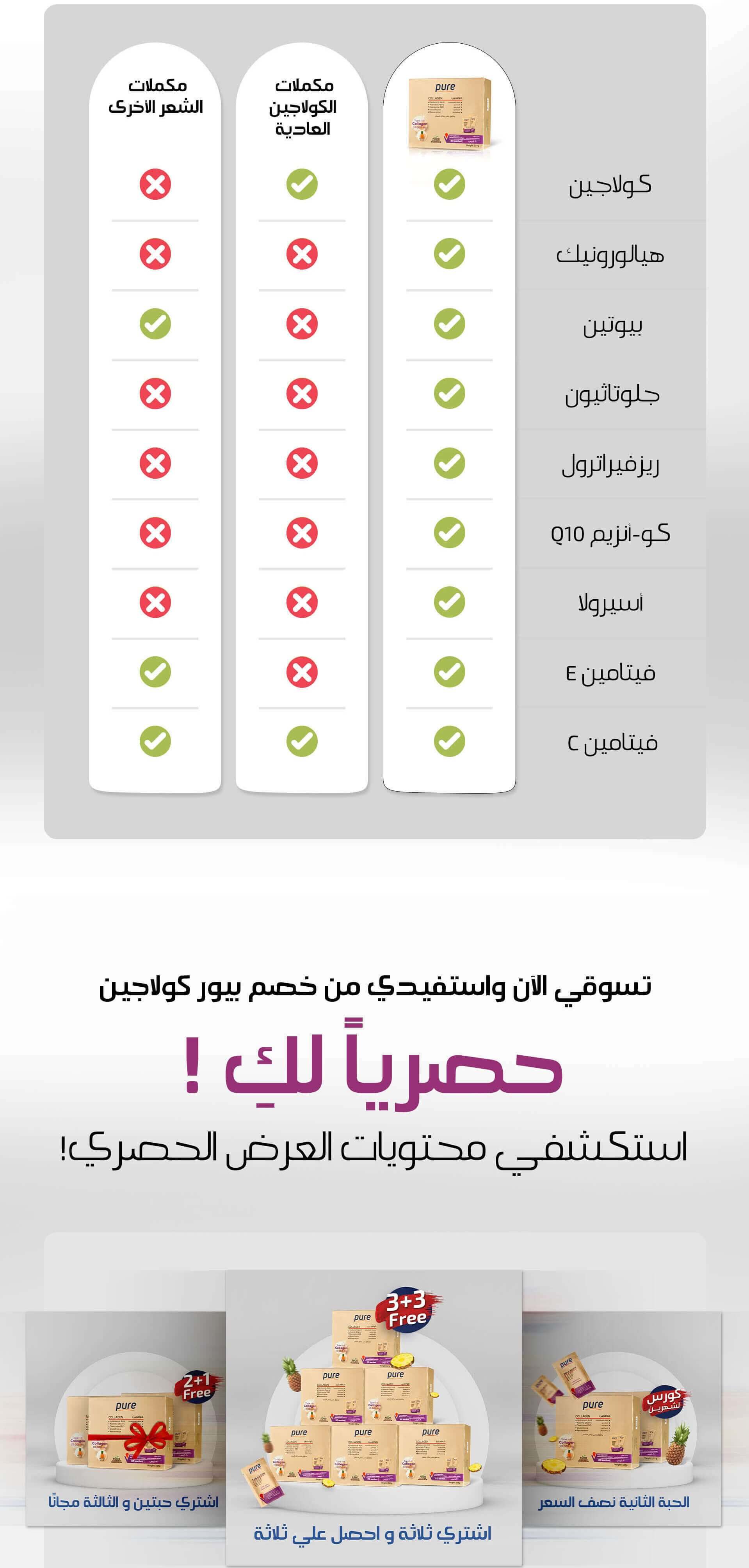 بيور كولاجين 10.000 ملجم - كولاجين ببتايد I و II مع البيوتين 500 ملجم وحمض الهيالورونيك ومضادات الأكسدة