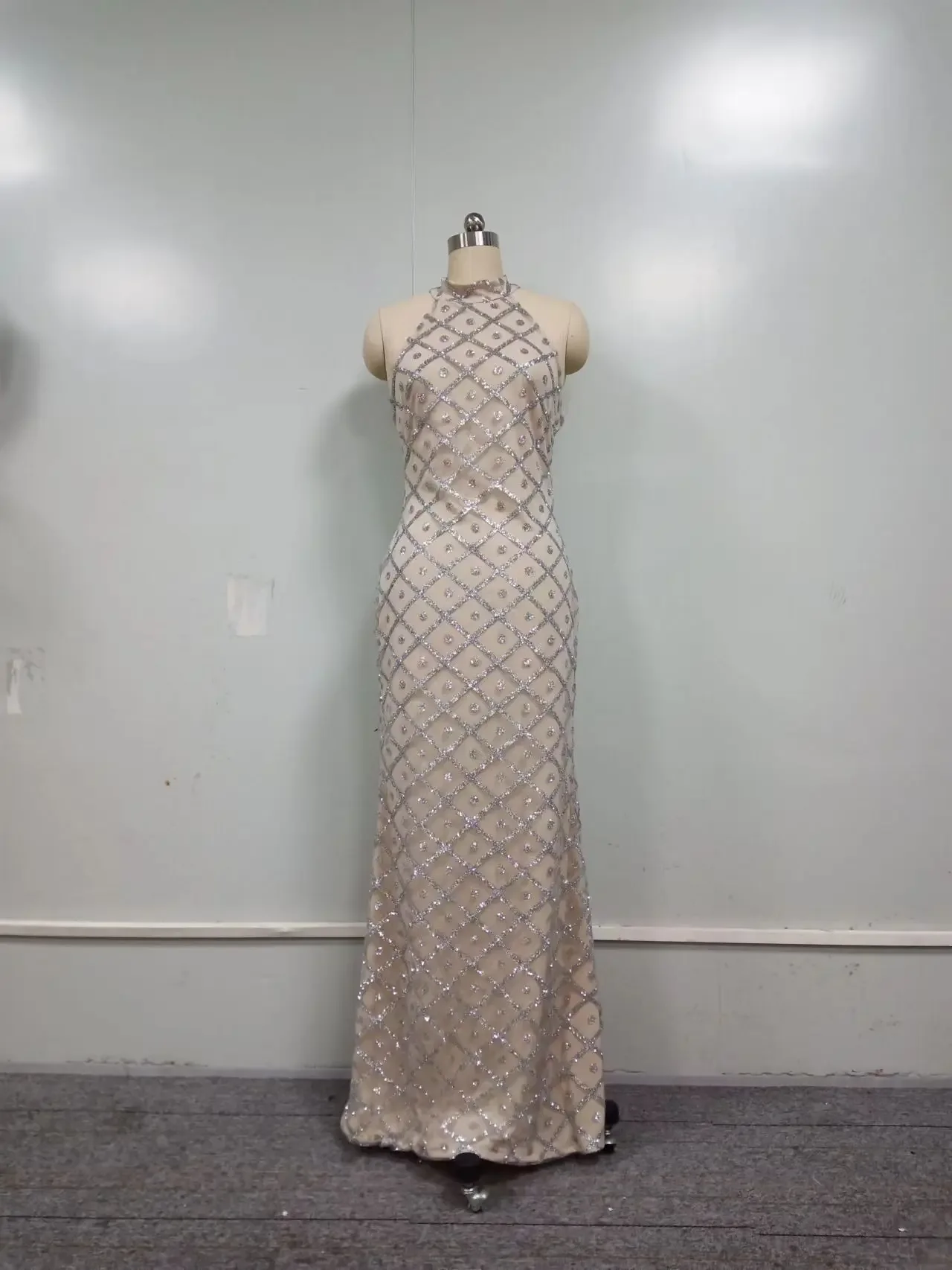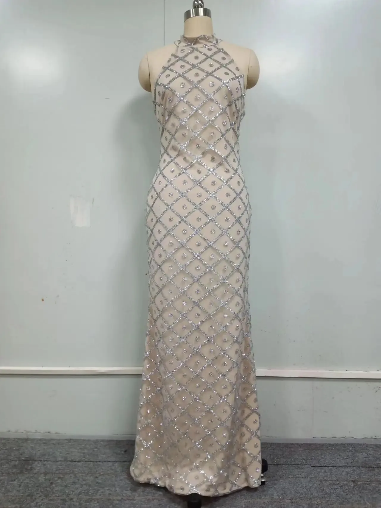 ملابس نسائية جديدة لربيع وصيف 2024 للتجارة الخارجية عبر الحدود بدون أكمام ورقبة رسن ذهبية متناثرة حول الفستان