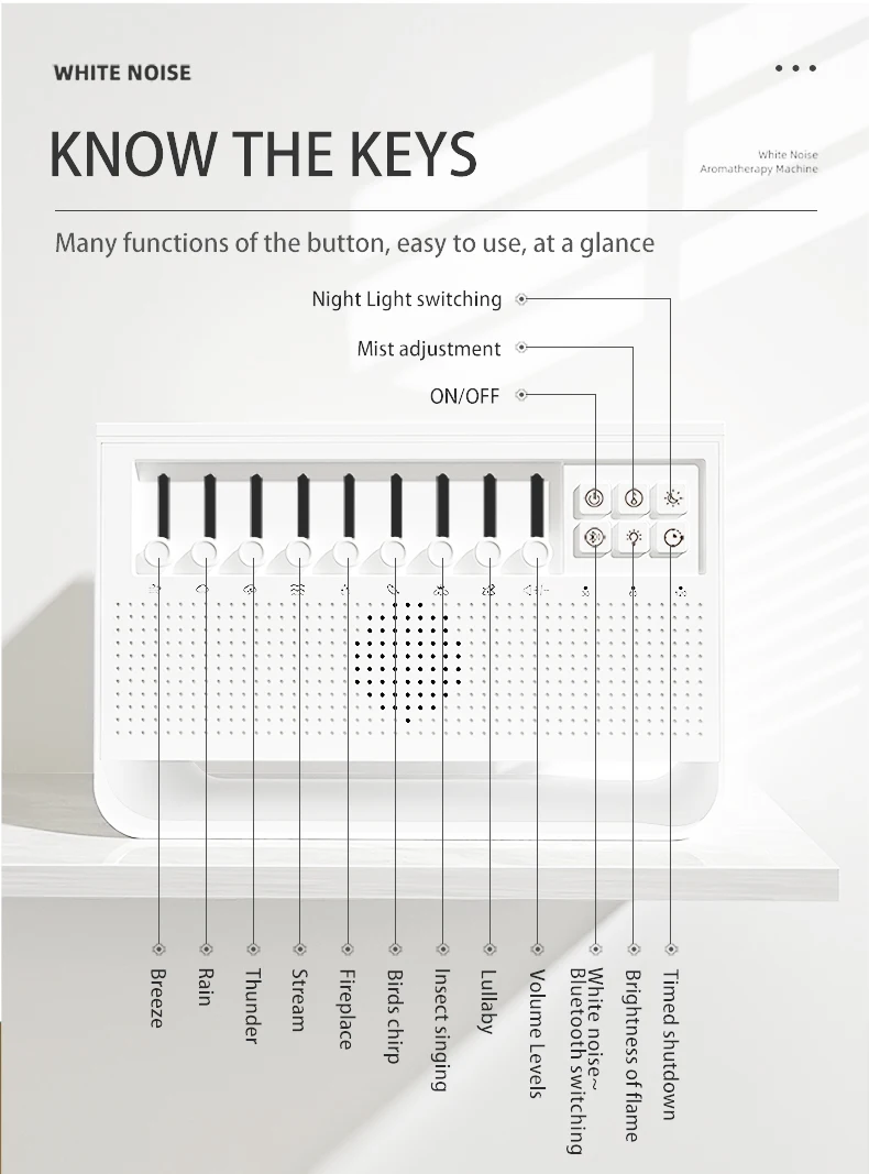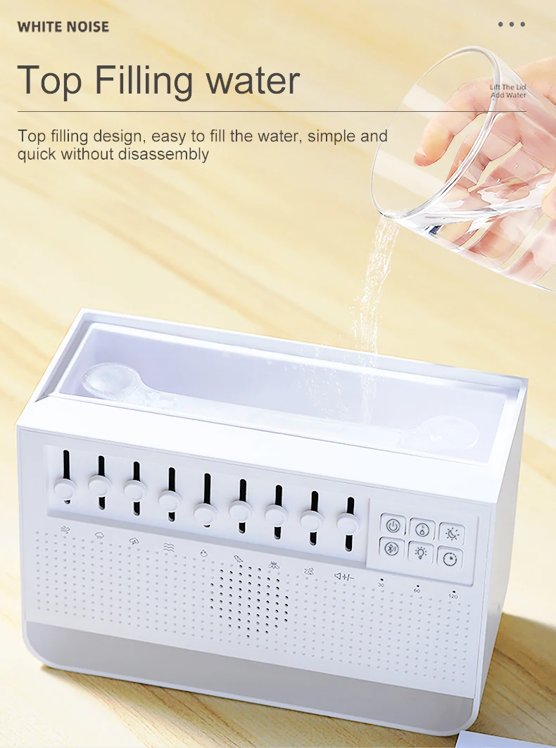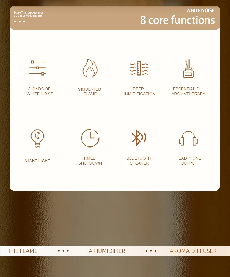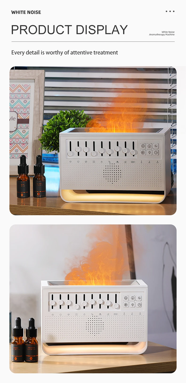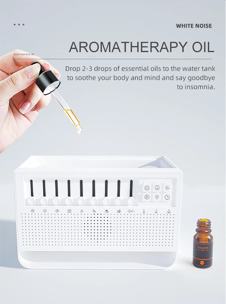 3in1 لهب موزع الهواء المرطب بالموجات فوق الصوتية الروائح 8 مزيج الضوضاء البيضاء ومشغل موسيقى بلوتوث الناشر العطر