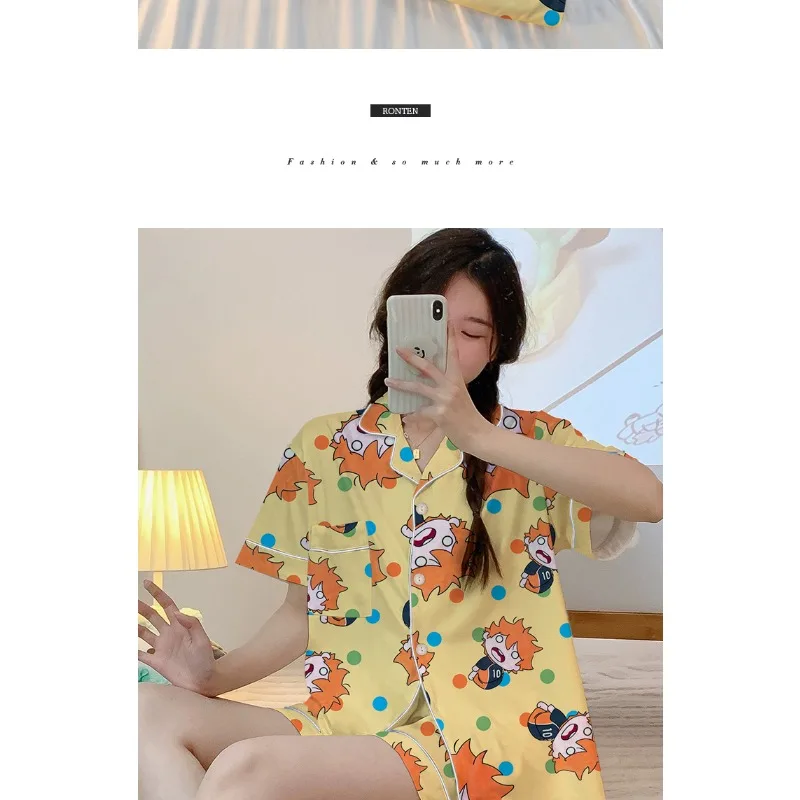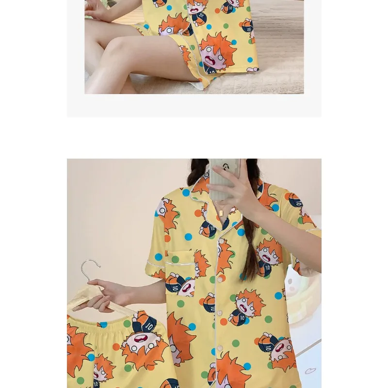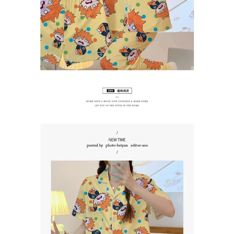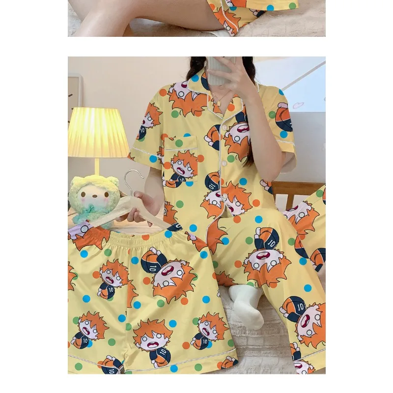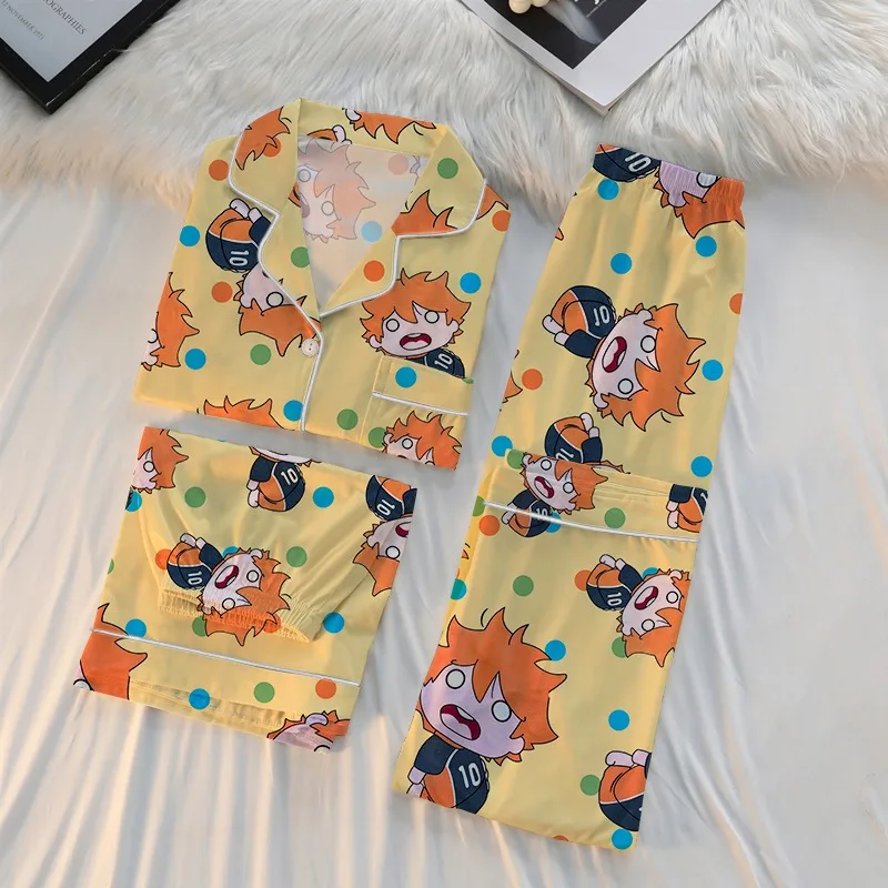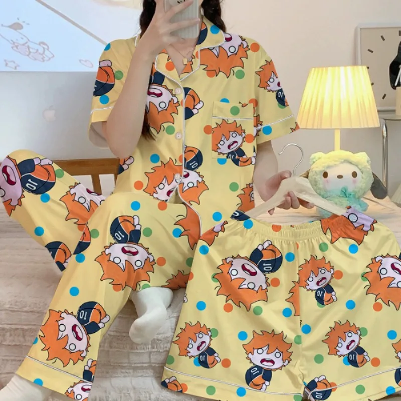 بيجامة نسائية بسيطة ملونة منقط لربيع وصيف 2025 سراويل قصيرة جديدة بأكمام قصيرة ملابس منزلية للفتيات بدلة من ثلاث قطع