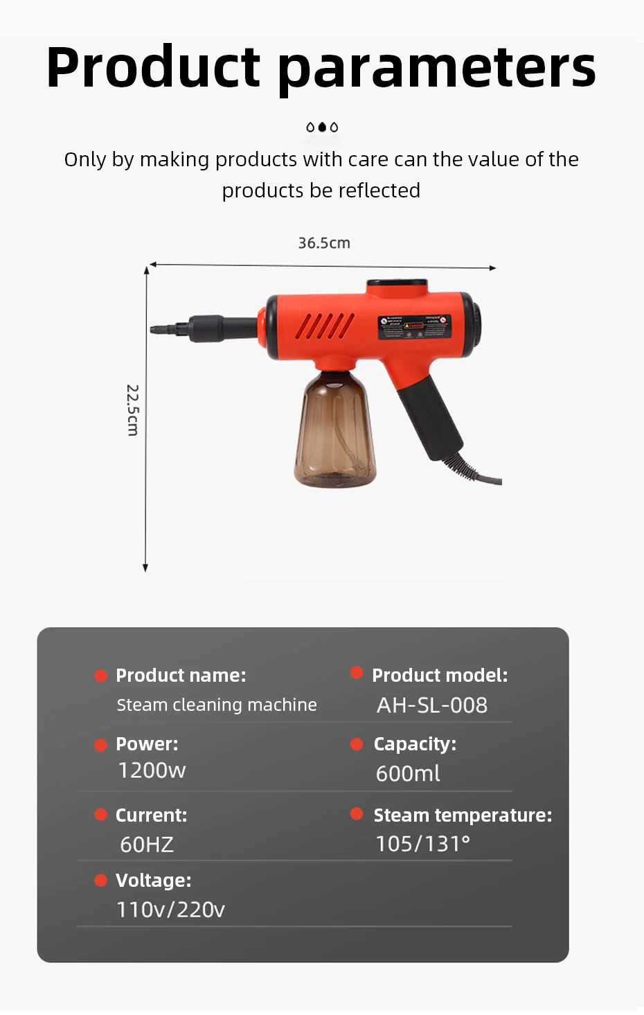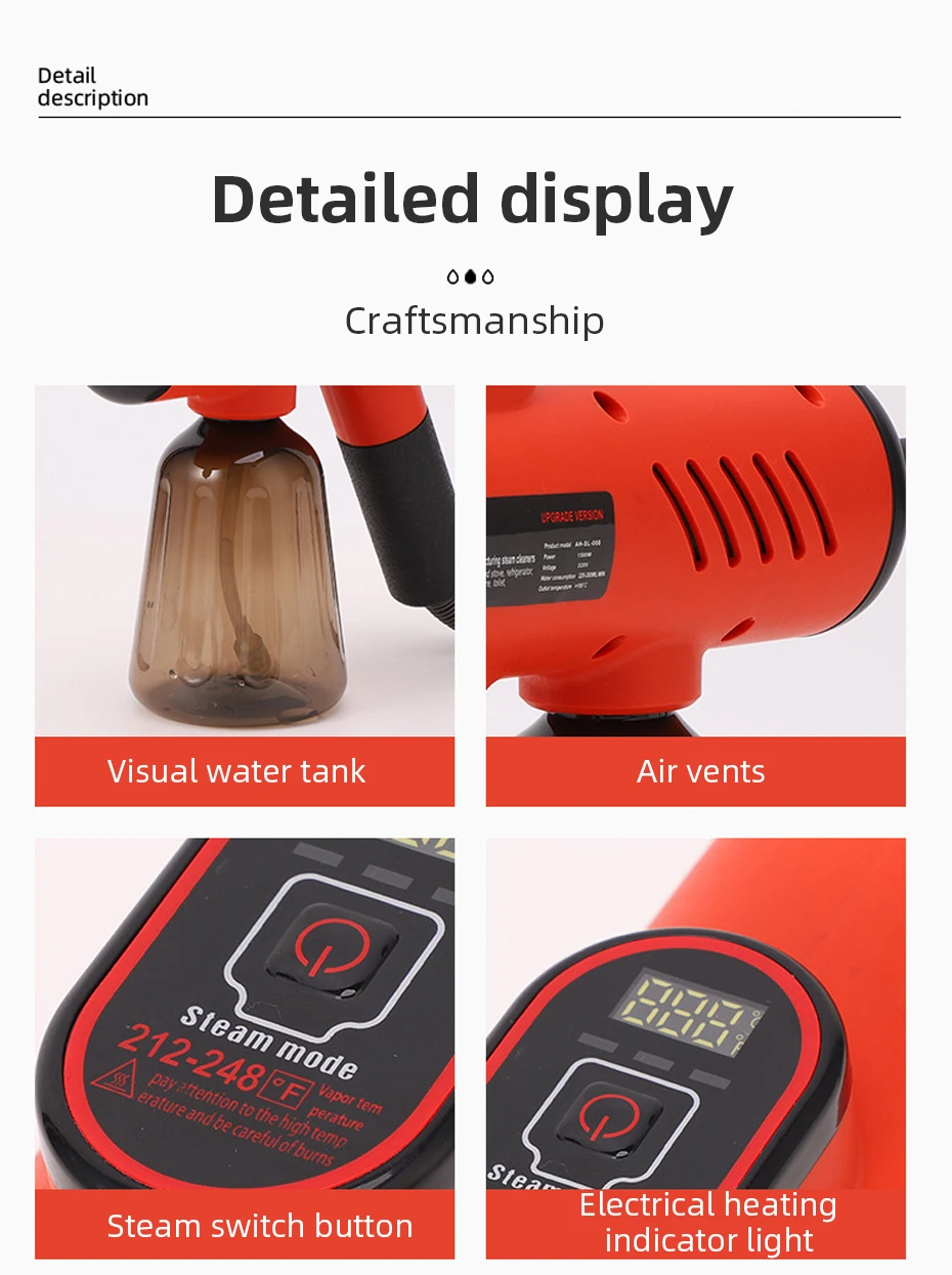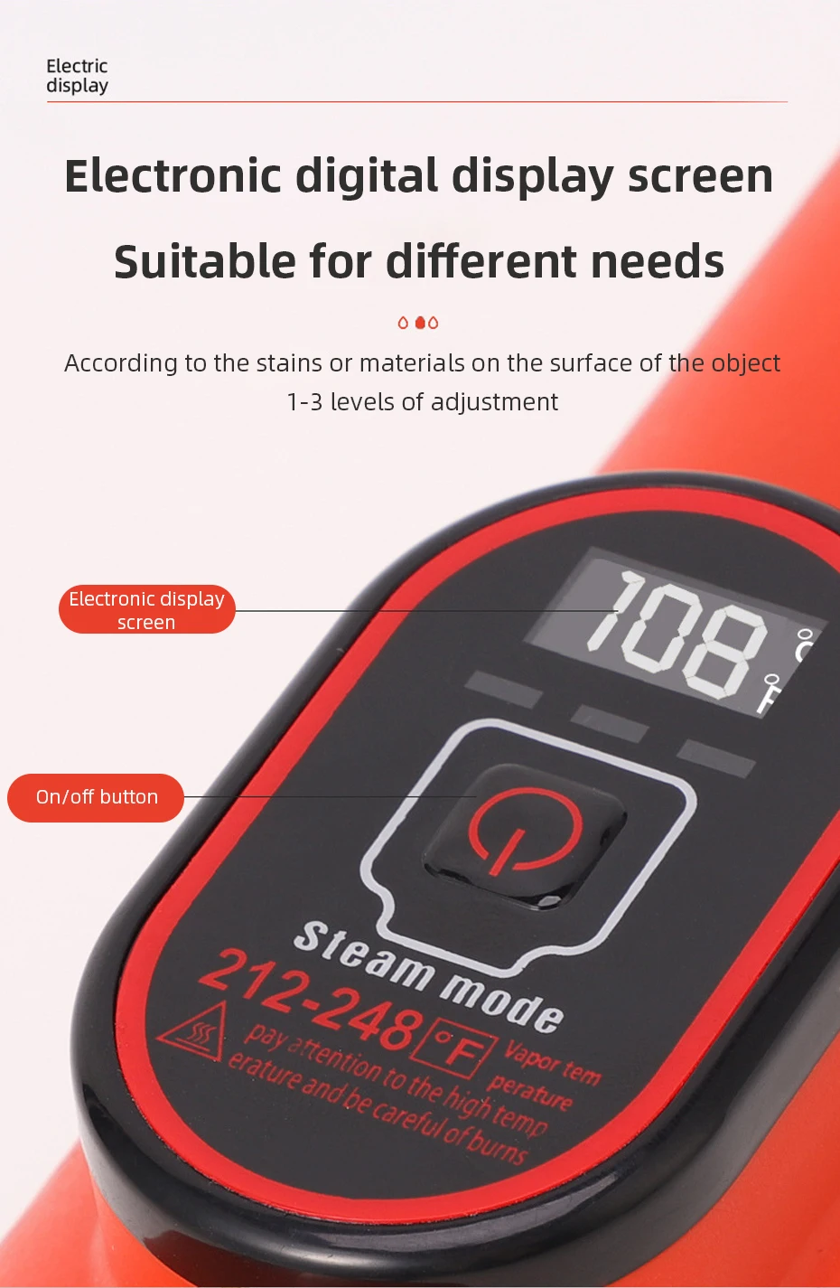 منظف بخار محمول بشاشة رقمية مع آلة تنظيف بخار كهربائية محمولة ذات درجة حرارة عالية بالضغط العالي للمطبخ المنزلي