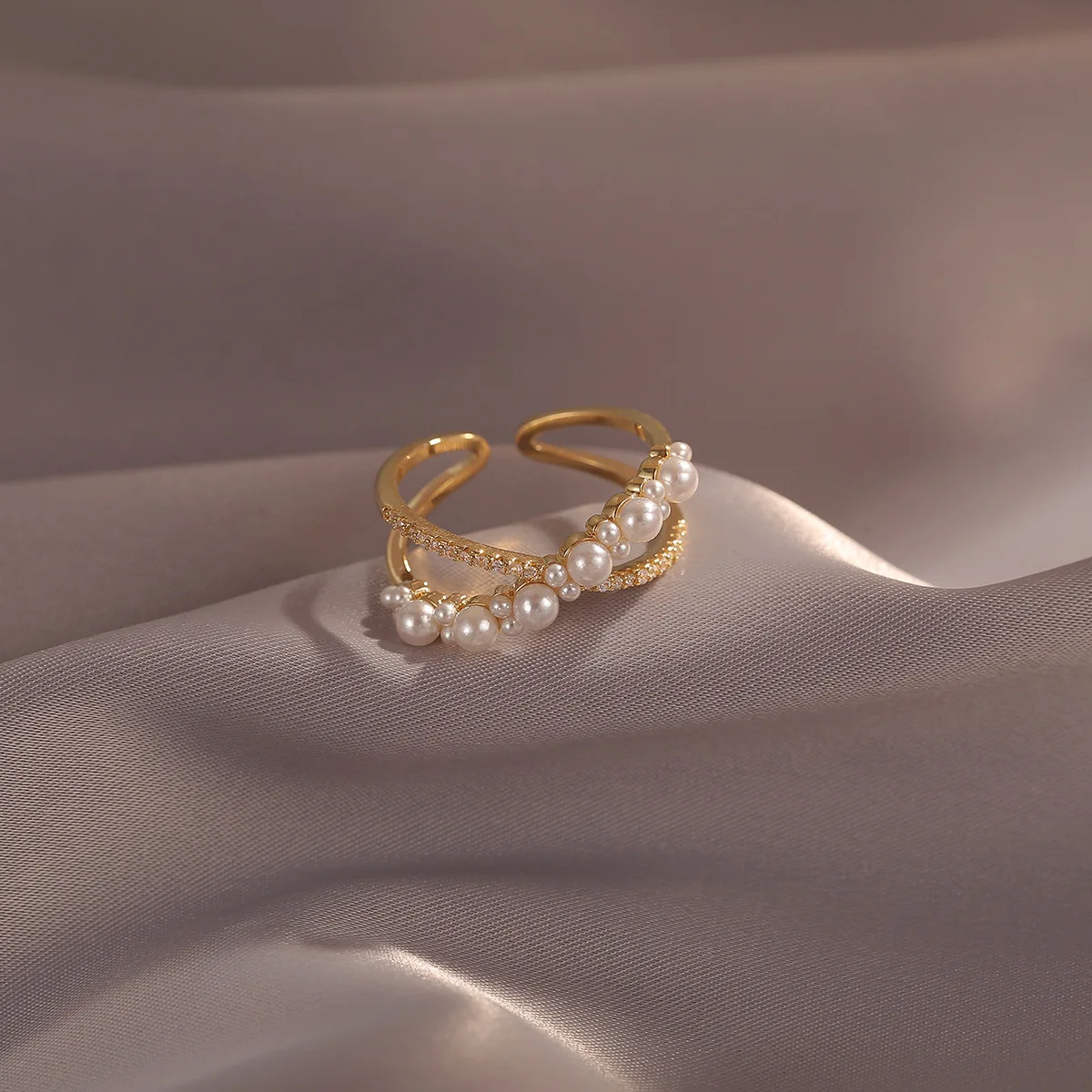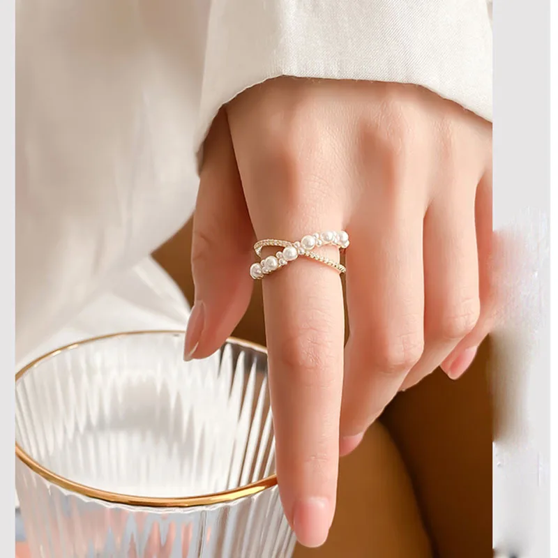 خاتم لؤلؤ بسيط للنساء ، خاتم مفتوح متعدد الاستخدامات ، مجوهرات أنيقة ، أزياء رائعة ، مزاجه ، كوري ، جديد ،