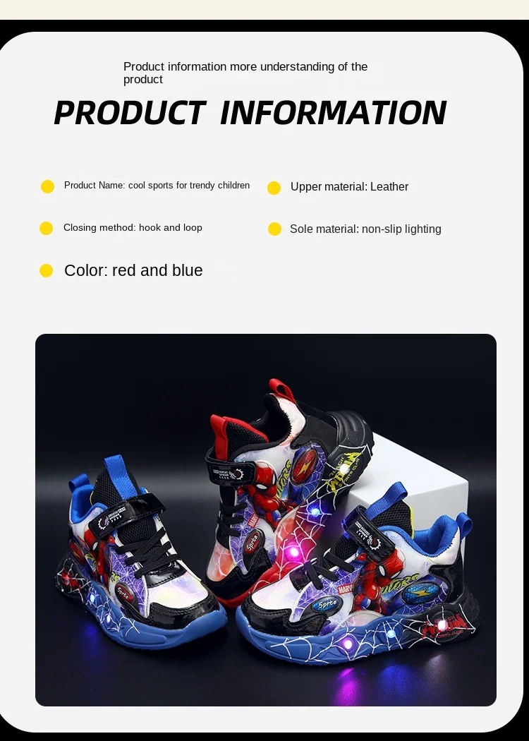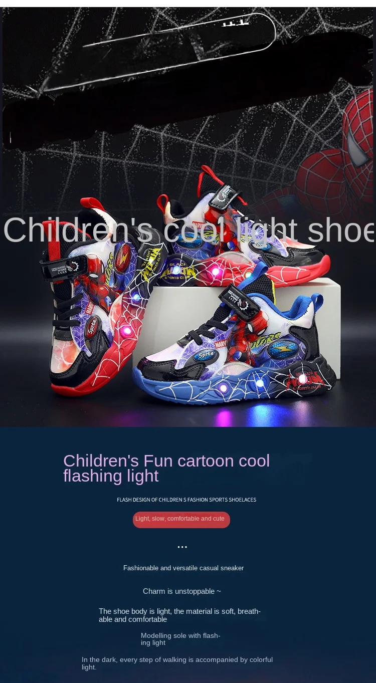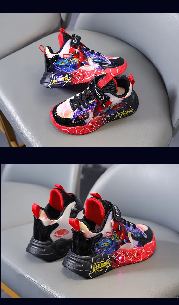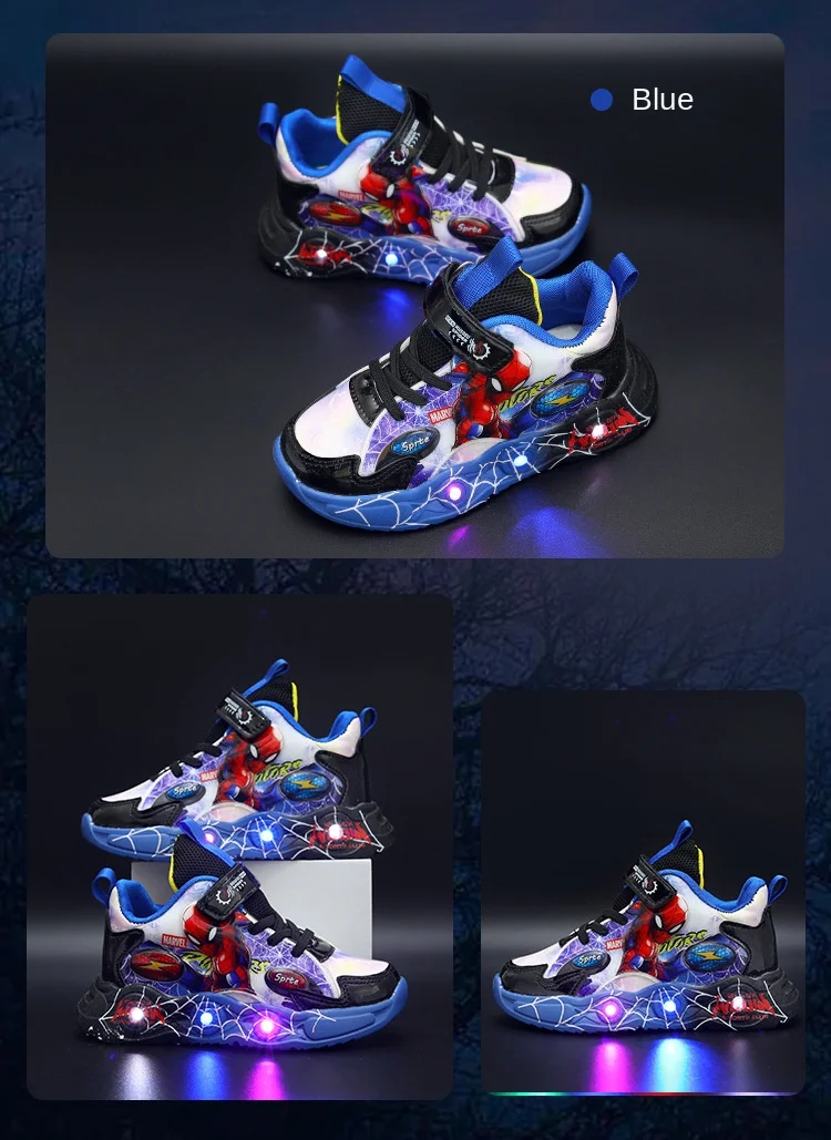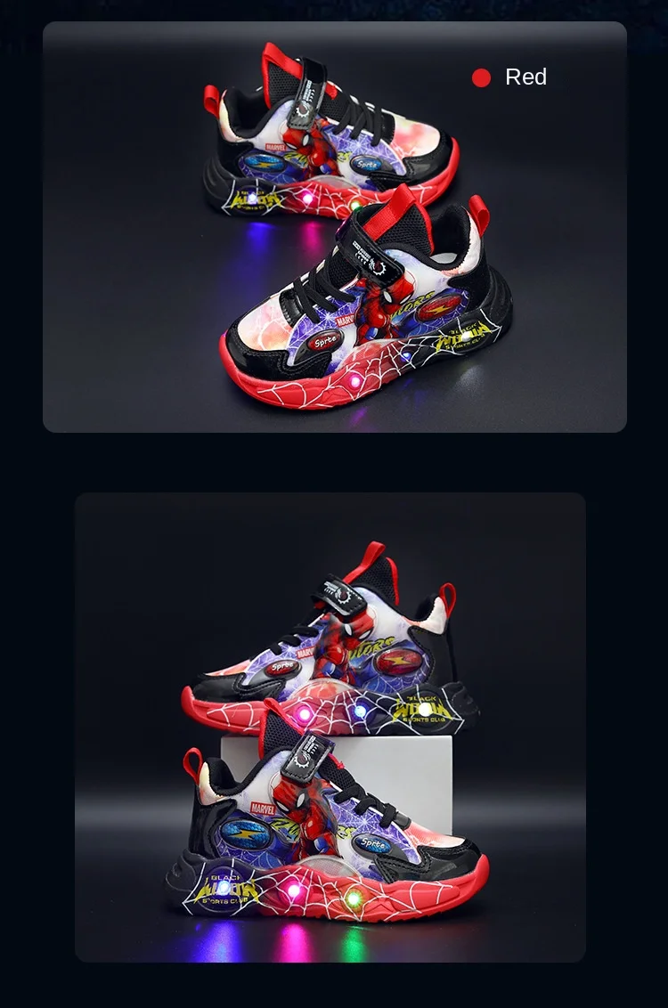 ديزني سبايدر مان أحذية الأطفال الأولاد أحذية رياضية ربيع الخريف الكرتون أزياء أطفال مضاءة أحذية رياضية طفل رضيع LED حذاء رياضة