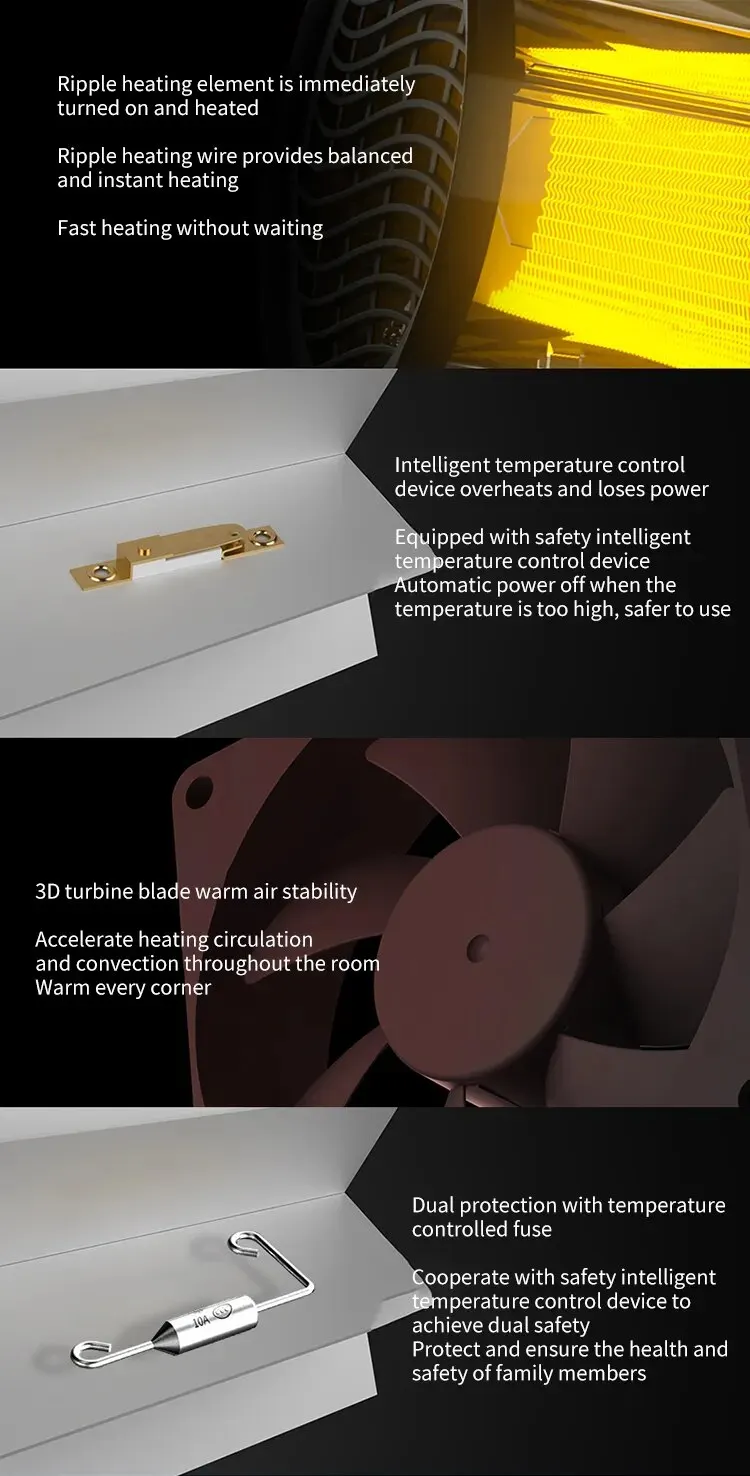جسم التسخين المموج مفتوح وساخن دون انتظار، توازن الحرارة مع التحكم الذكي في درجة الحرارة الزائدة وحماية الطاقة، استخدام أكثر أمانًا.