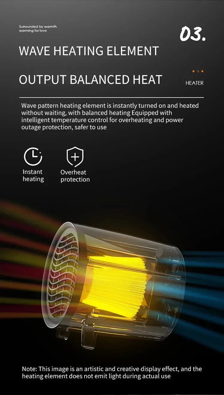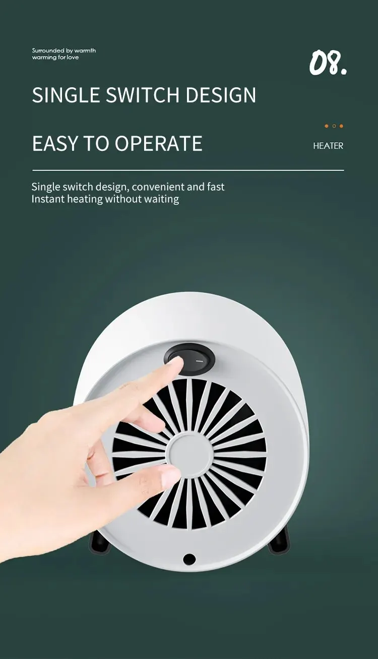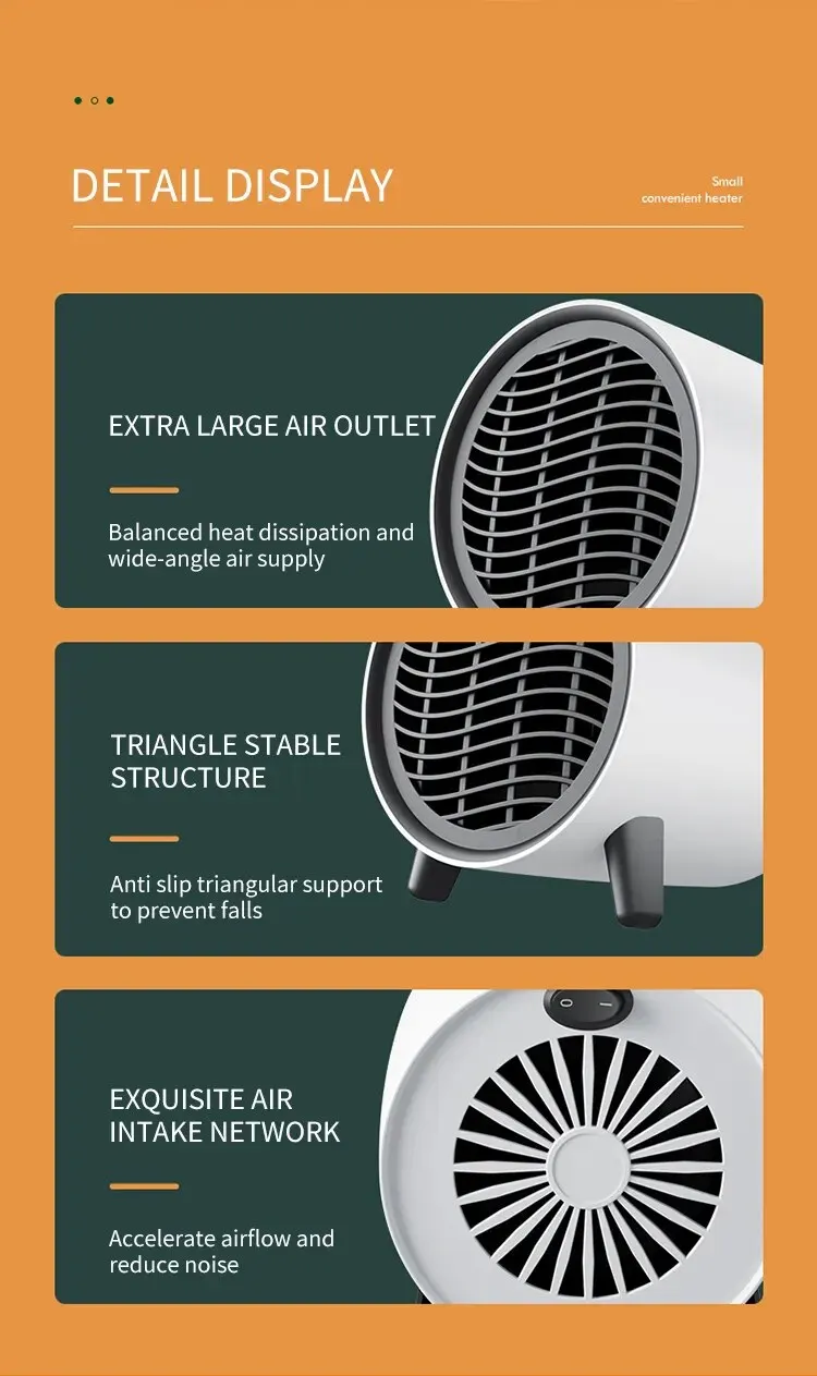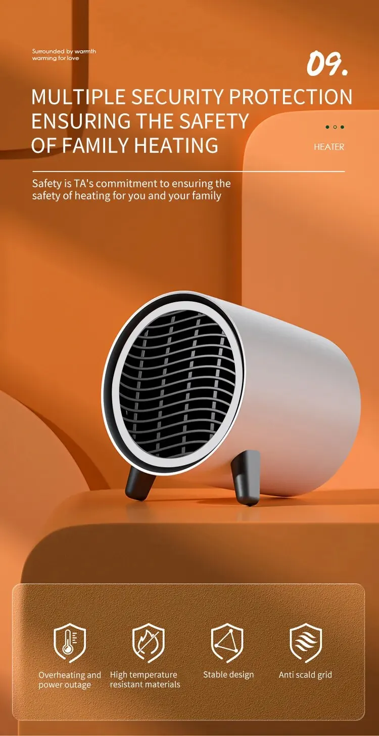 • التدفئة السريعة :يسخن سخان سطح المكتب الصغير بسرعة، مما يوفر الدفء في أي وقت من الأوقات.