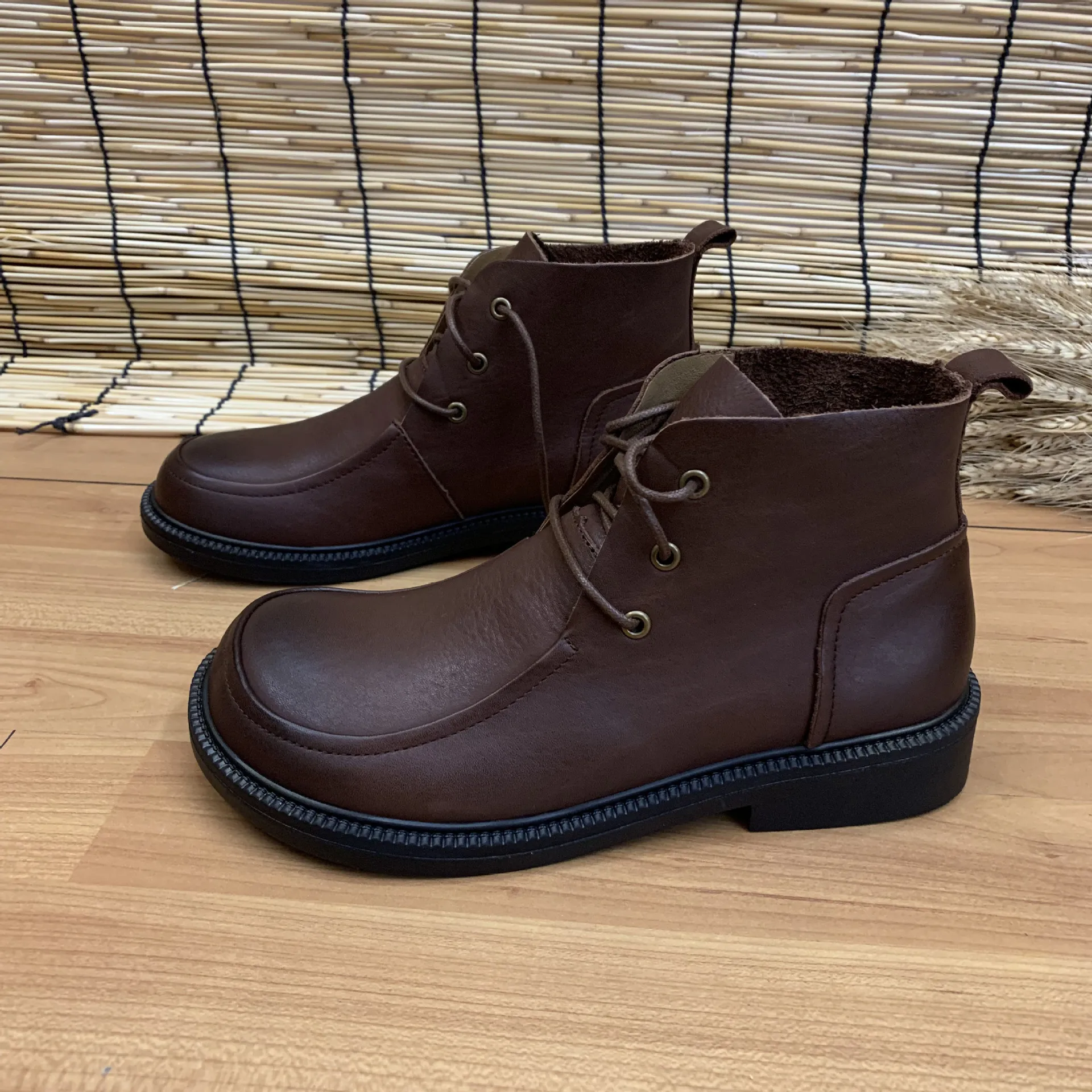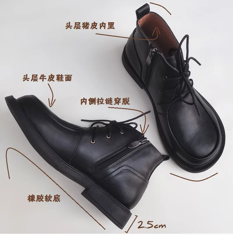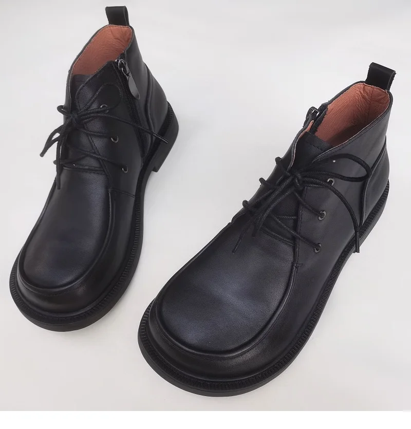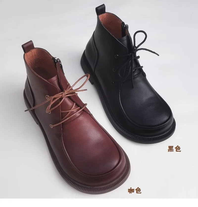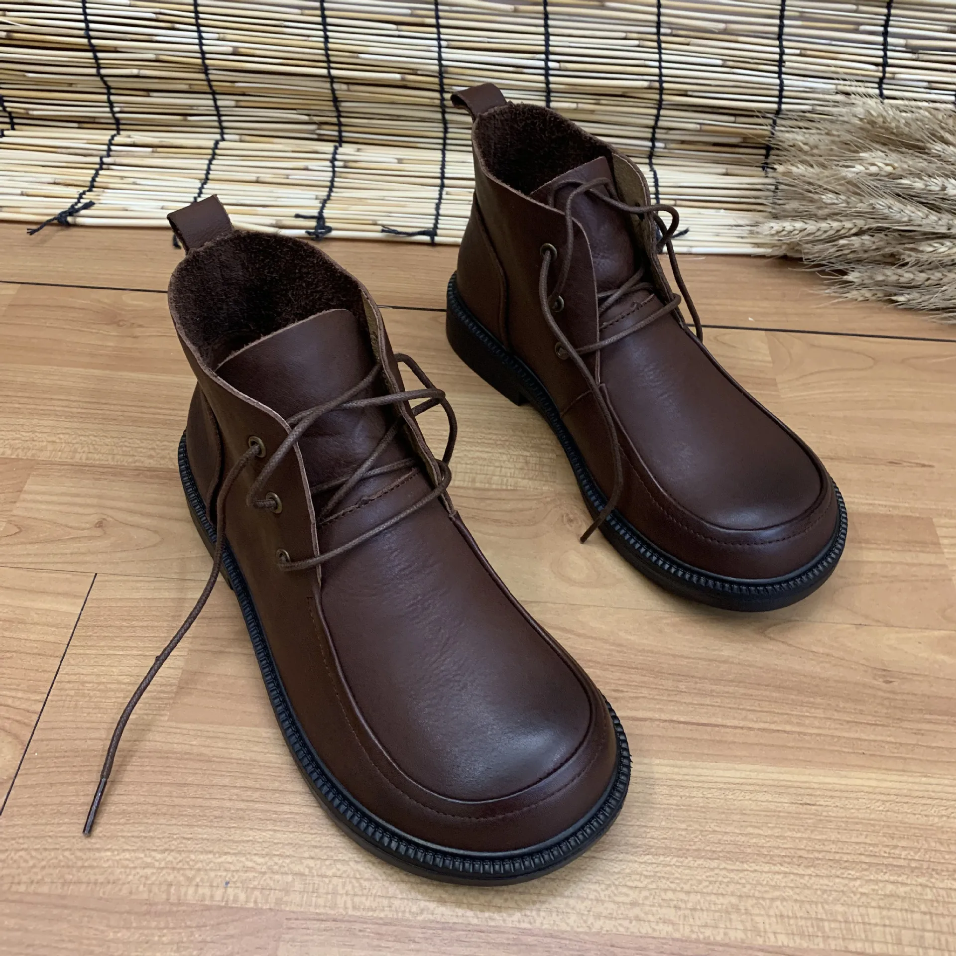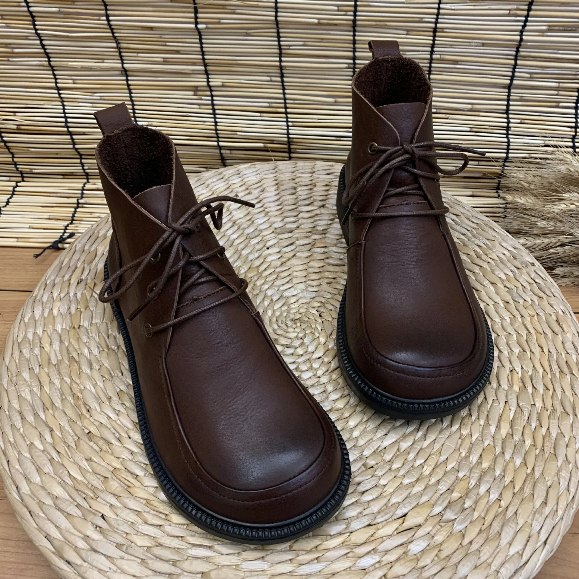 Careaymade-جلد طبيعي الرجال أحذية كبيرة رئيس النسخة واسعة الأعمال الترفيه الأصلي واحدة الكاحل نصف الأحذية النسائية قصيرة