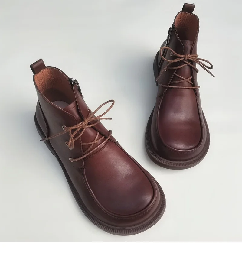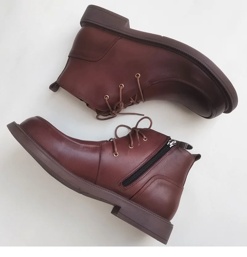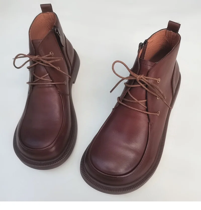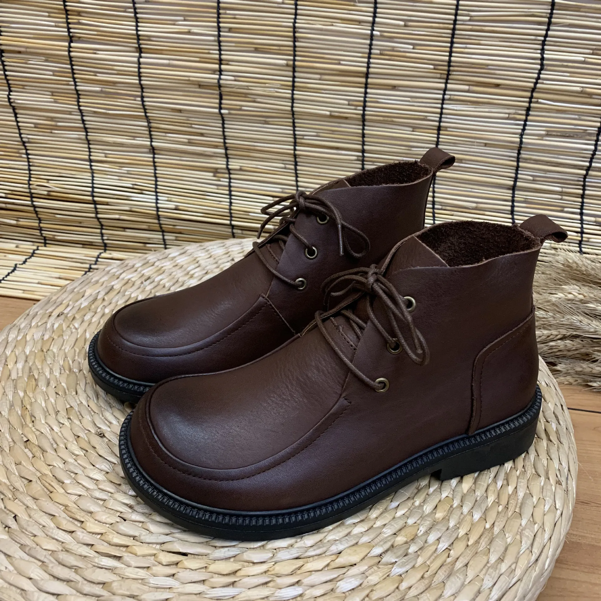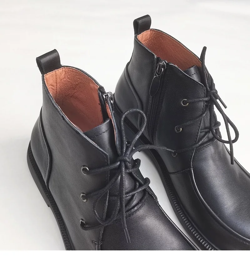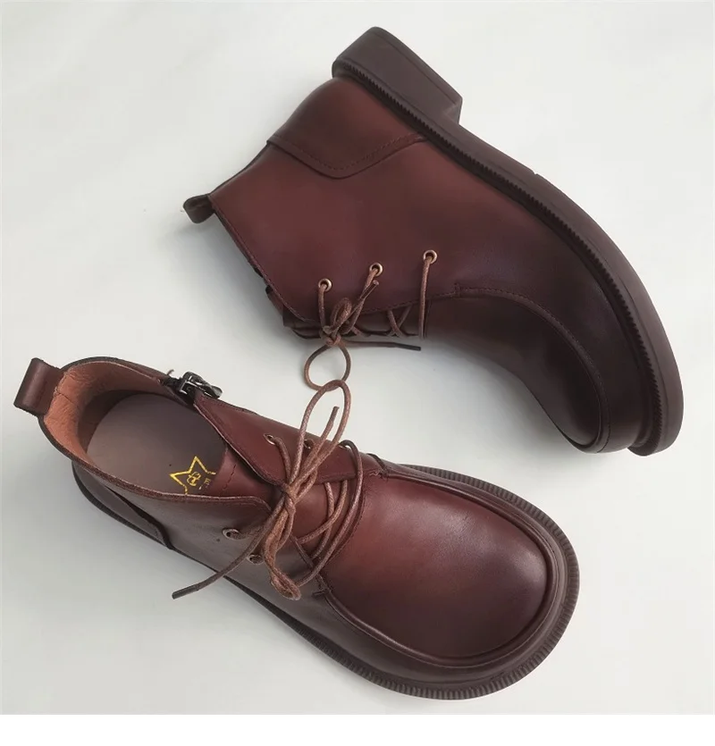 Careaymade-جلد طبيعي الرجال أحذية كبيرة رئيس النسخة واسعة الأعمال الترفيه الأصلي واحدة الكاحل نصف الأحذية النسائية قصيرة