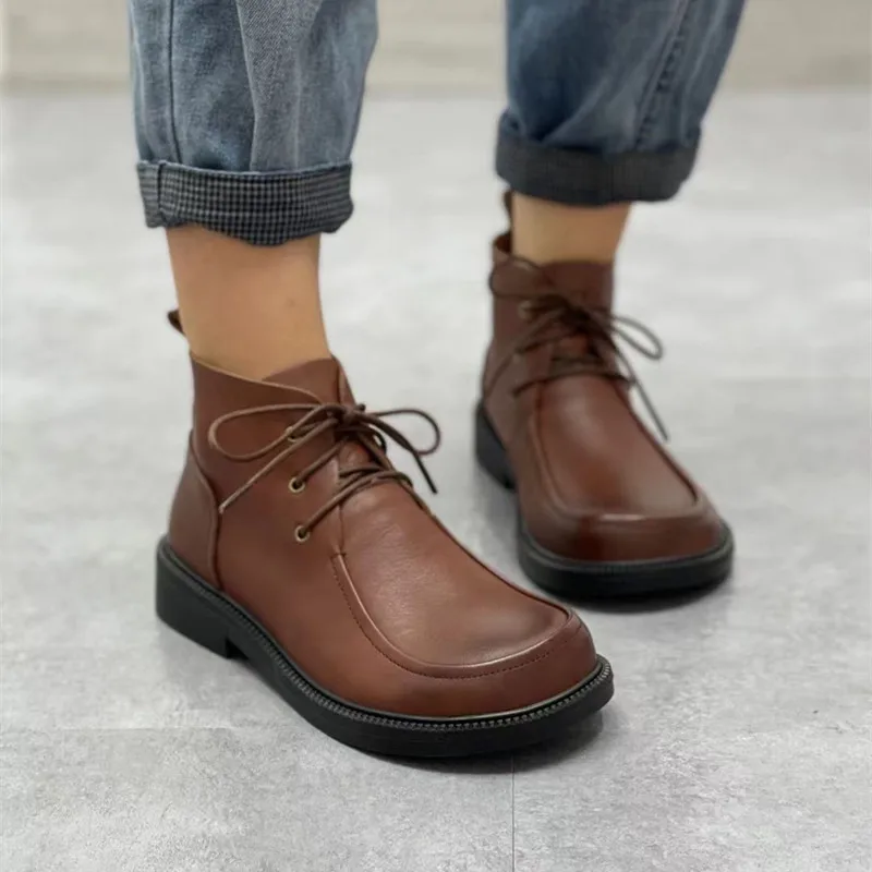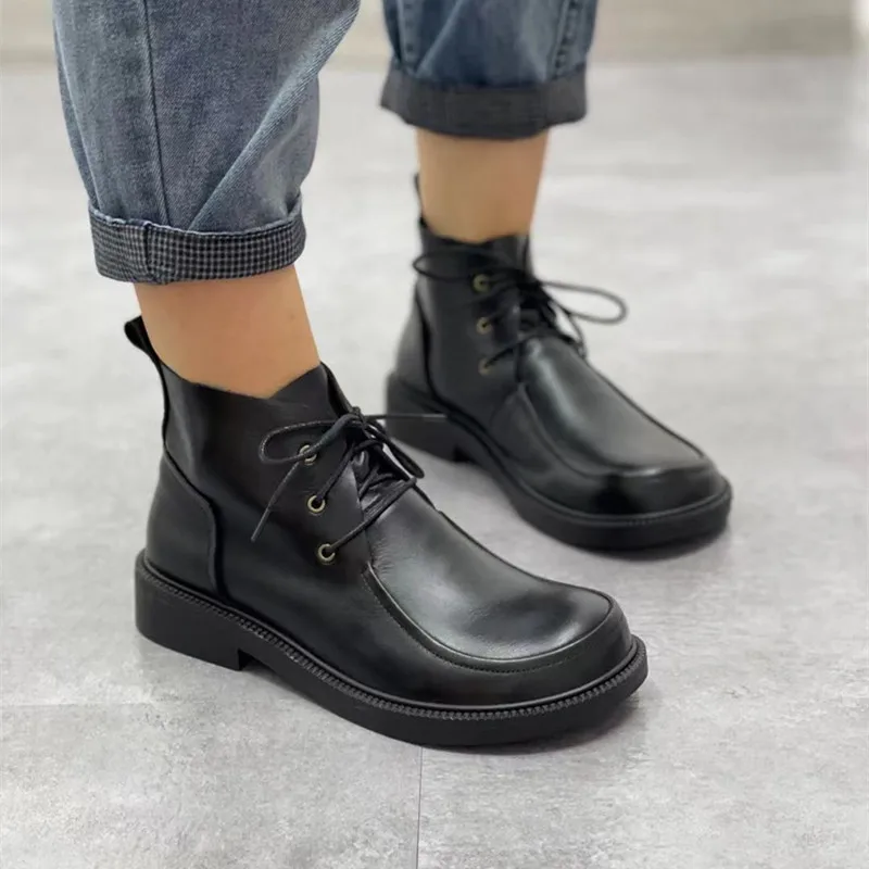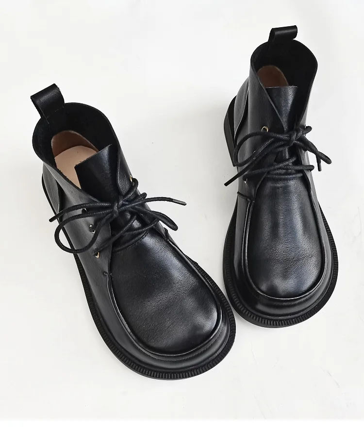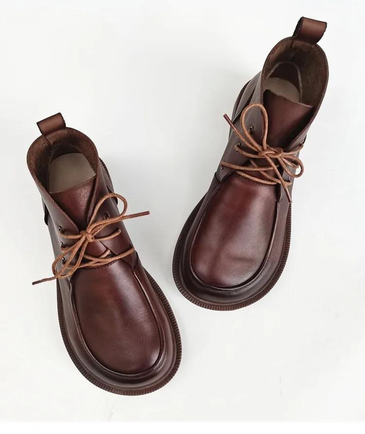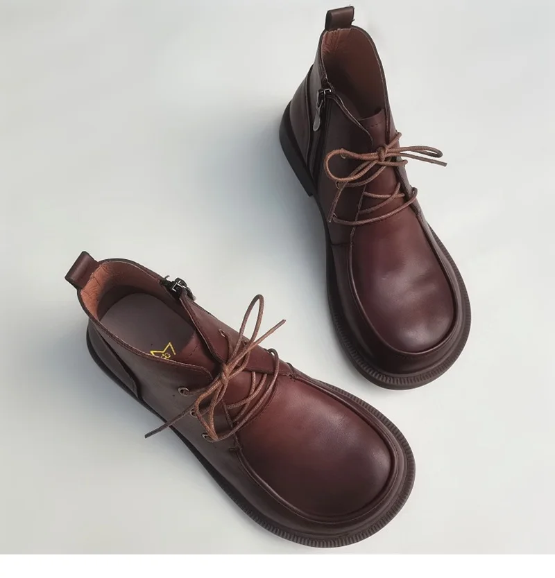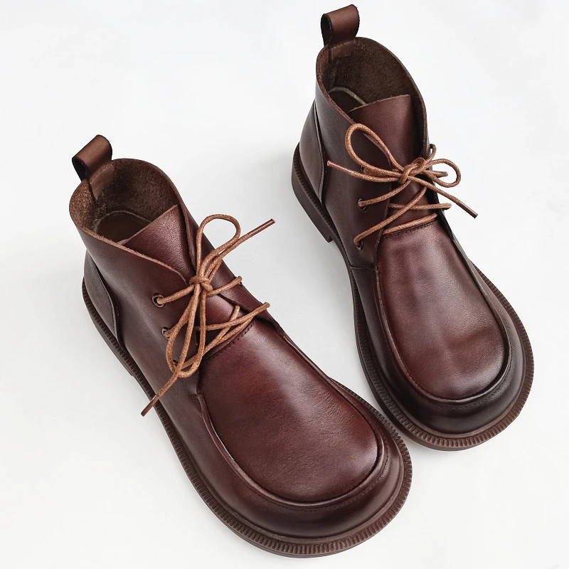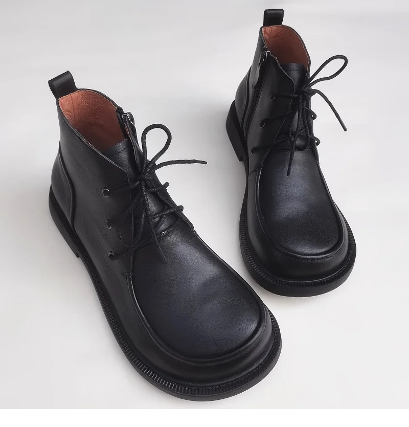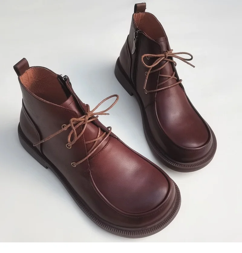 Careaymade-جلد طبيعي الرجال أحذية كبيرة رئيس النسخة واسعة الأعمال الترفيه الأصلي واحدة الكاحل نصف الأحذية النسائية قصيرة