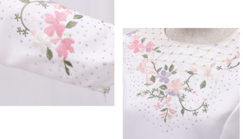 ملابس نسائية تطريز تطريز ألماس ساخن أبيض أنيق قديم فستان زفاف قفص قطن من قطعتين