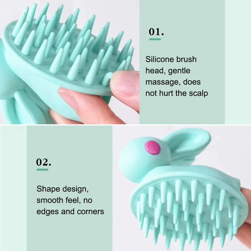 تدليك فروة الرأس من السيليكون ، الشامبو الأرنب ، مشط غسل الشعر ، فرشاة الاستحمام ، الحمام ، الأطفال