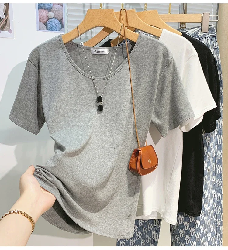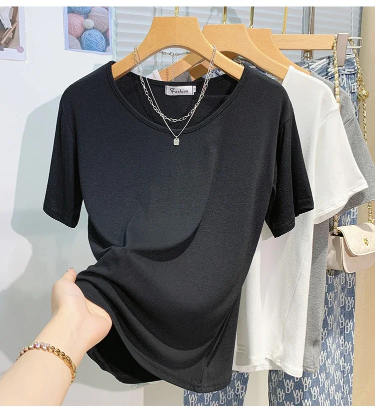 2025 المرأة تي شيرت الفتيات تي شيرت ملابس امرأة بلايز التي شيرت الإناث قصيرة الأكمام الربيع المحملة مثير Y2k قمة بيضاء جديدة