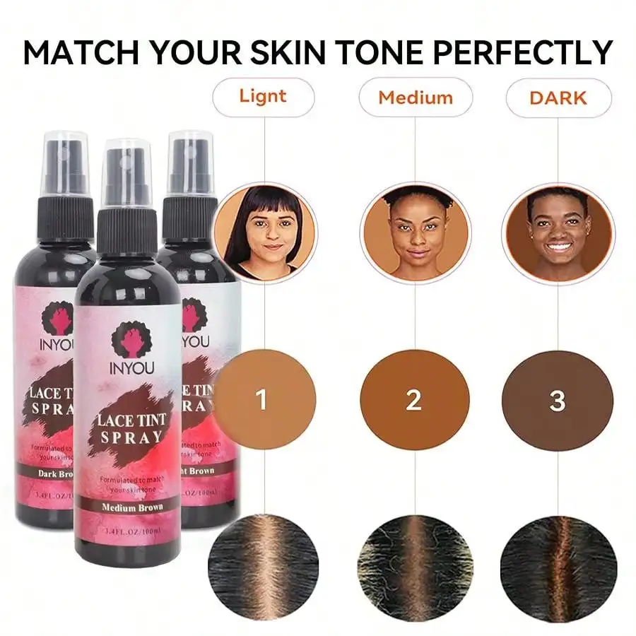 رذاذ لون الدانتيل للشعر المستعار، مقاوم للماء الدانتيل تينت ذوبان موس رذاذ المخفي لإغلاق الدانتيل الجبهة الباروكات الشعر المستعار