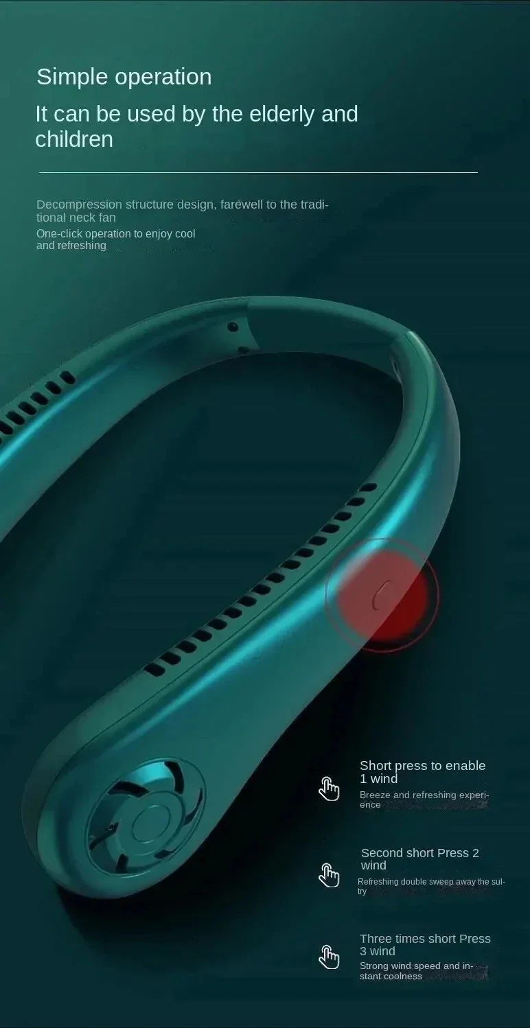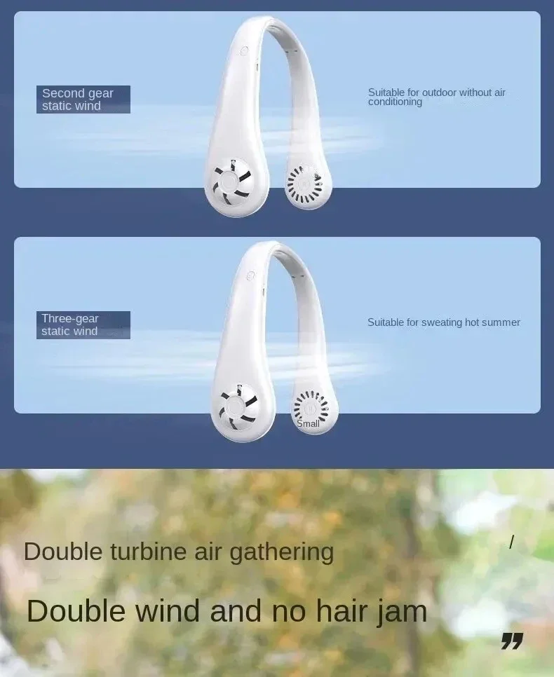 1 قطعة مروحة طويلة التحمل جديد صغير الرقبة المحمولة لا الخالية من الشفرة معلقة الرقبة قابلة للشحن مبرد الهواء 3 سرعة مروحة رياضية صيفية صغيرة