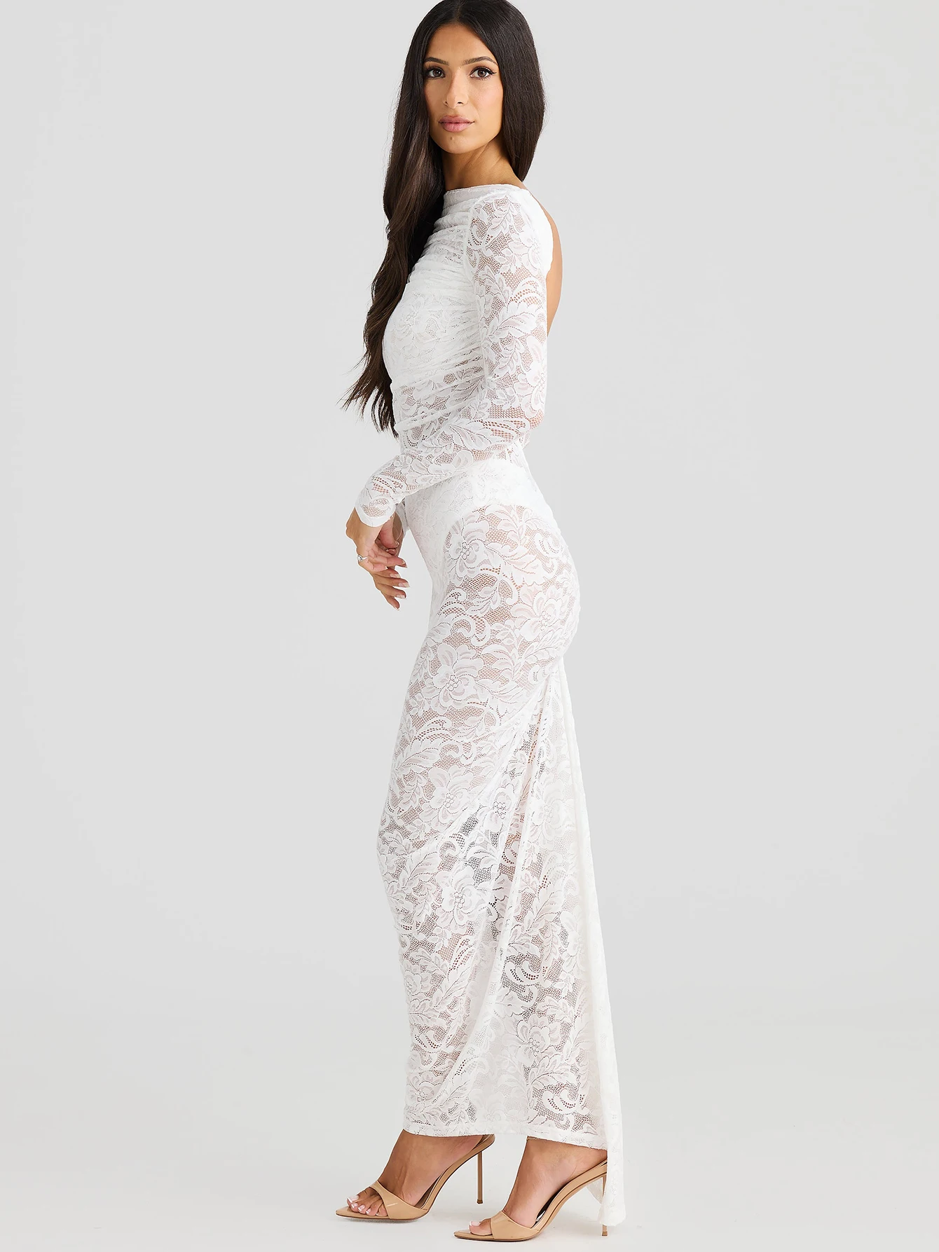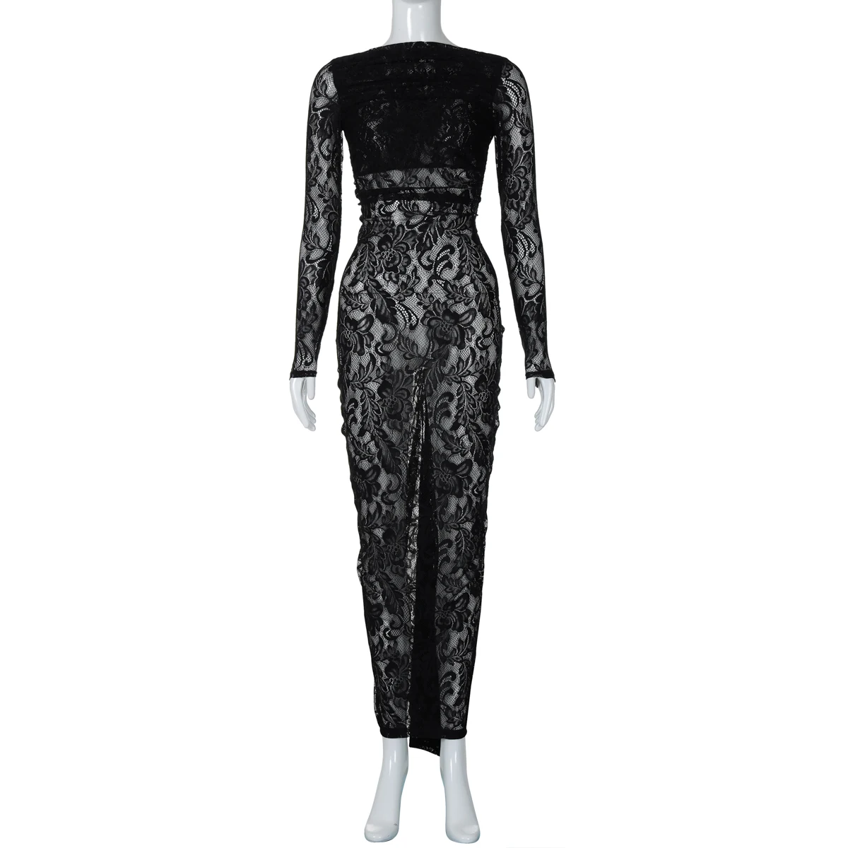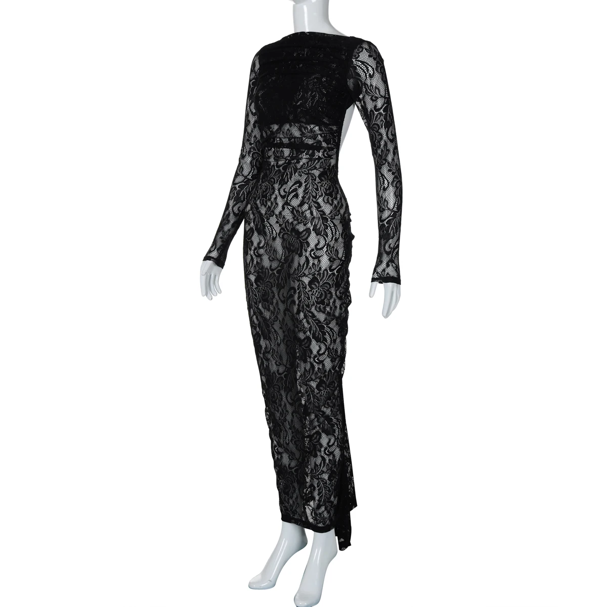 فستان طويل من Dulzura بأكمام طويلة مكشكش من الدانتيل شفاف بدون ظهر فستان نسائي طويل أنيق مثير للحفلات والنوادي لربيع وصيف