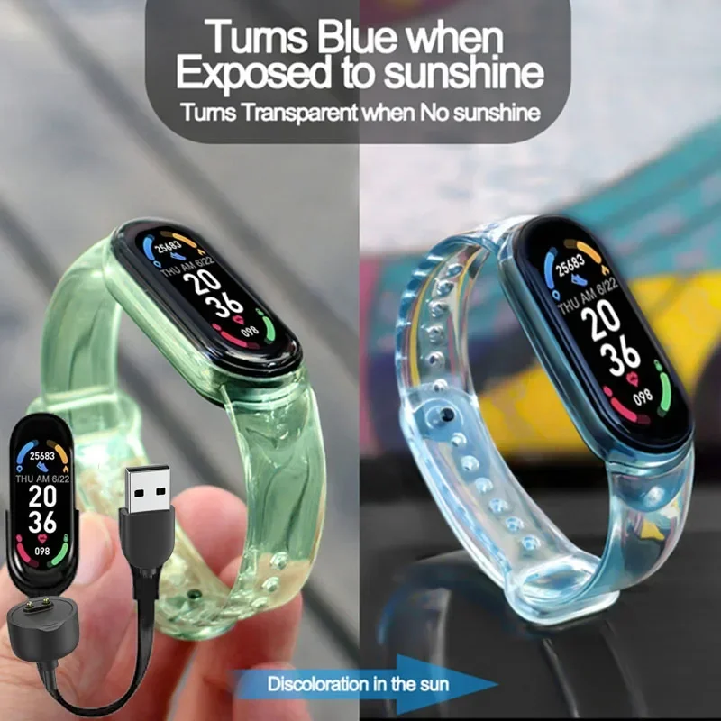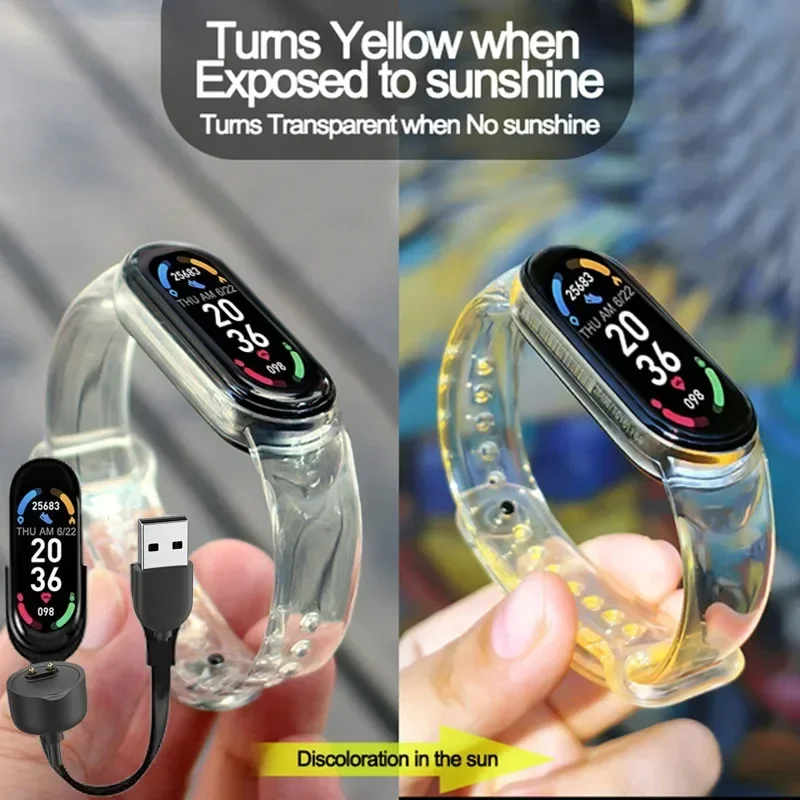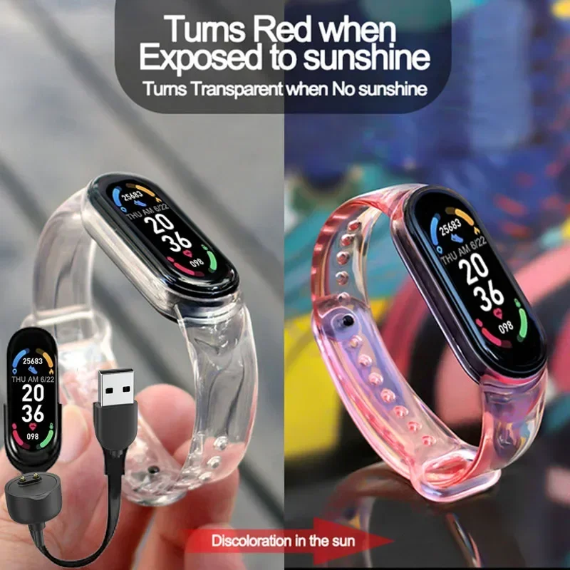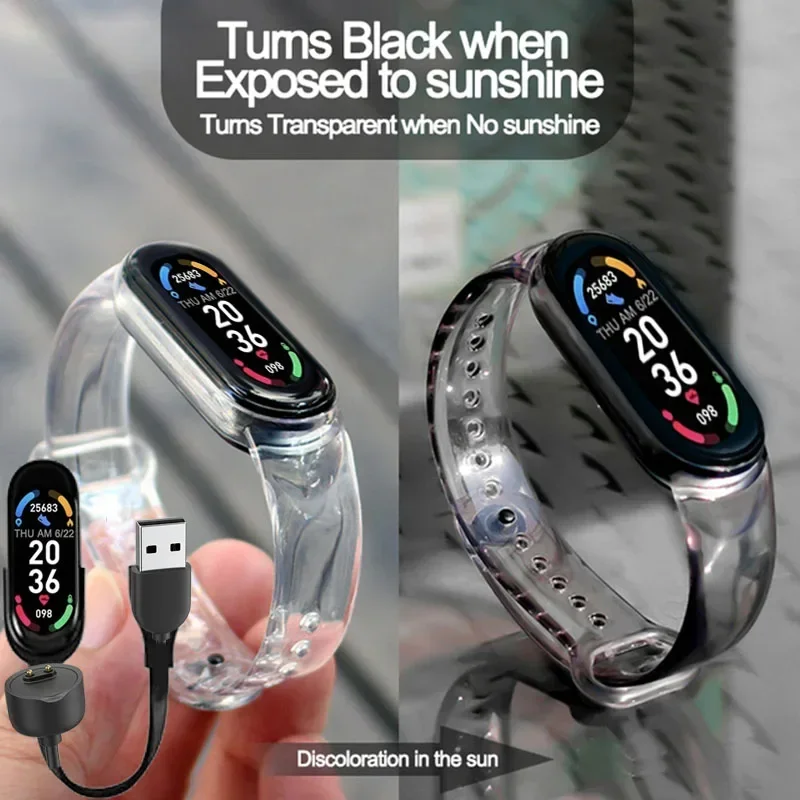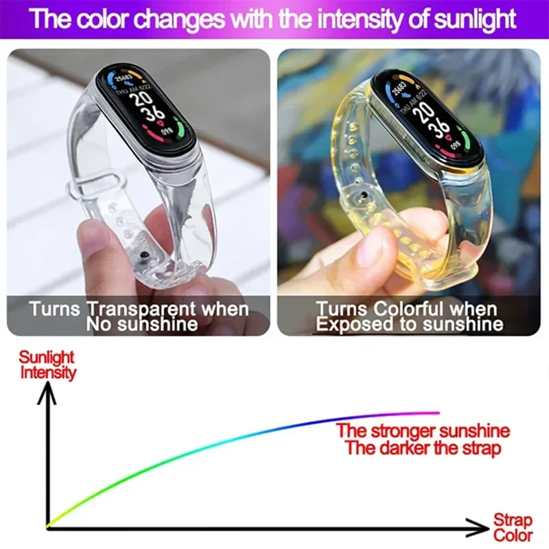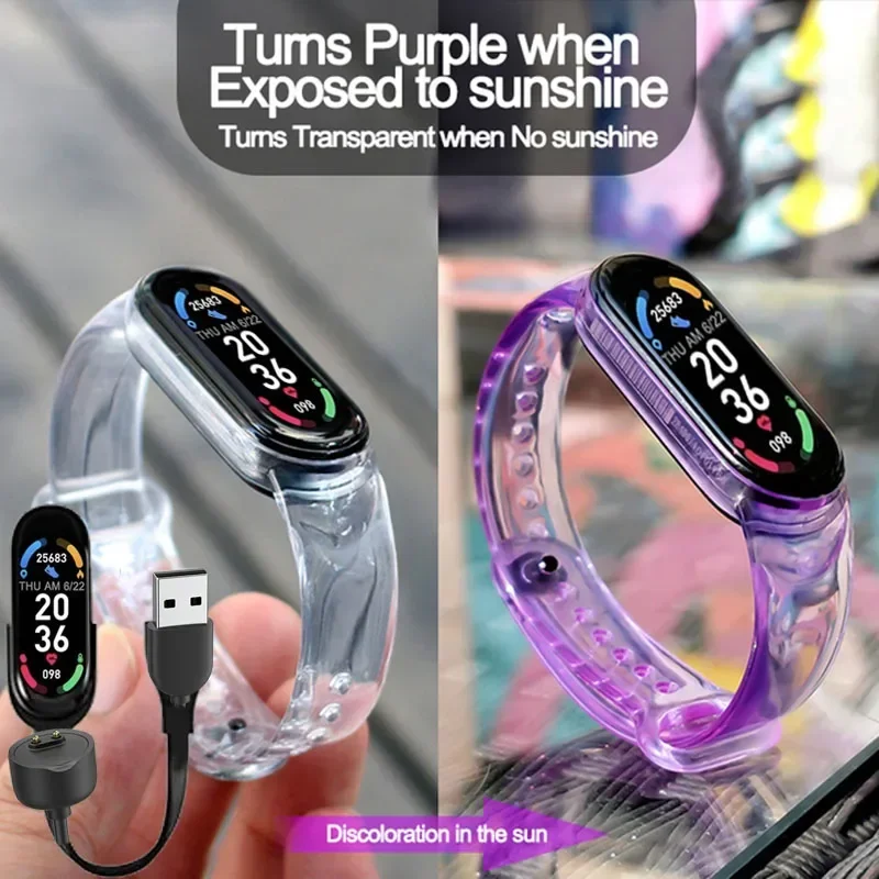 1. سوار ساعة ذكية من السيليكون الشفاف يتغير لونه عند التعرض للضوء ، مما يجلب موجة جديدة من الخبرة.