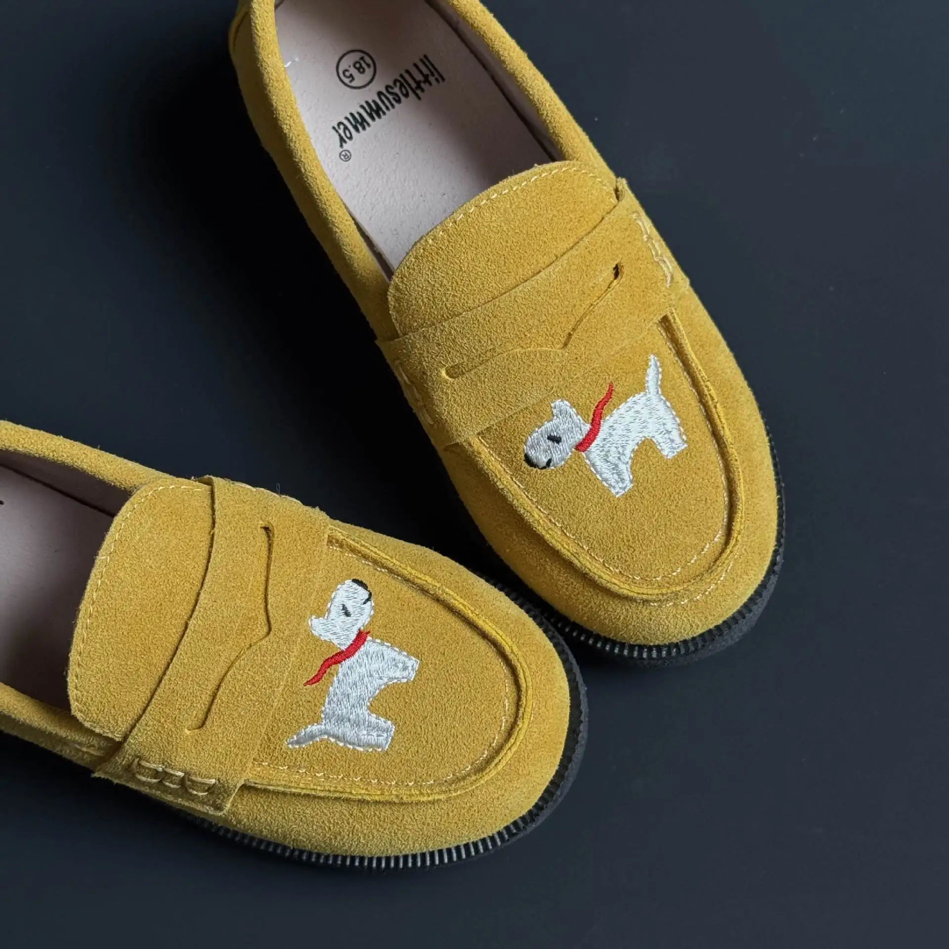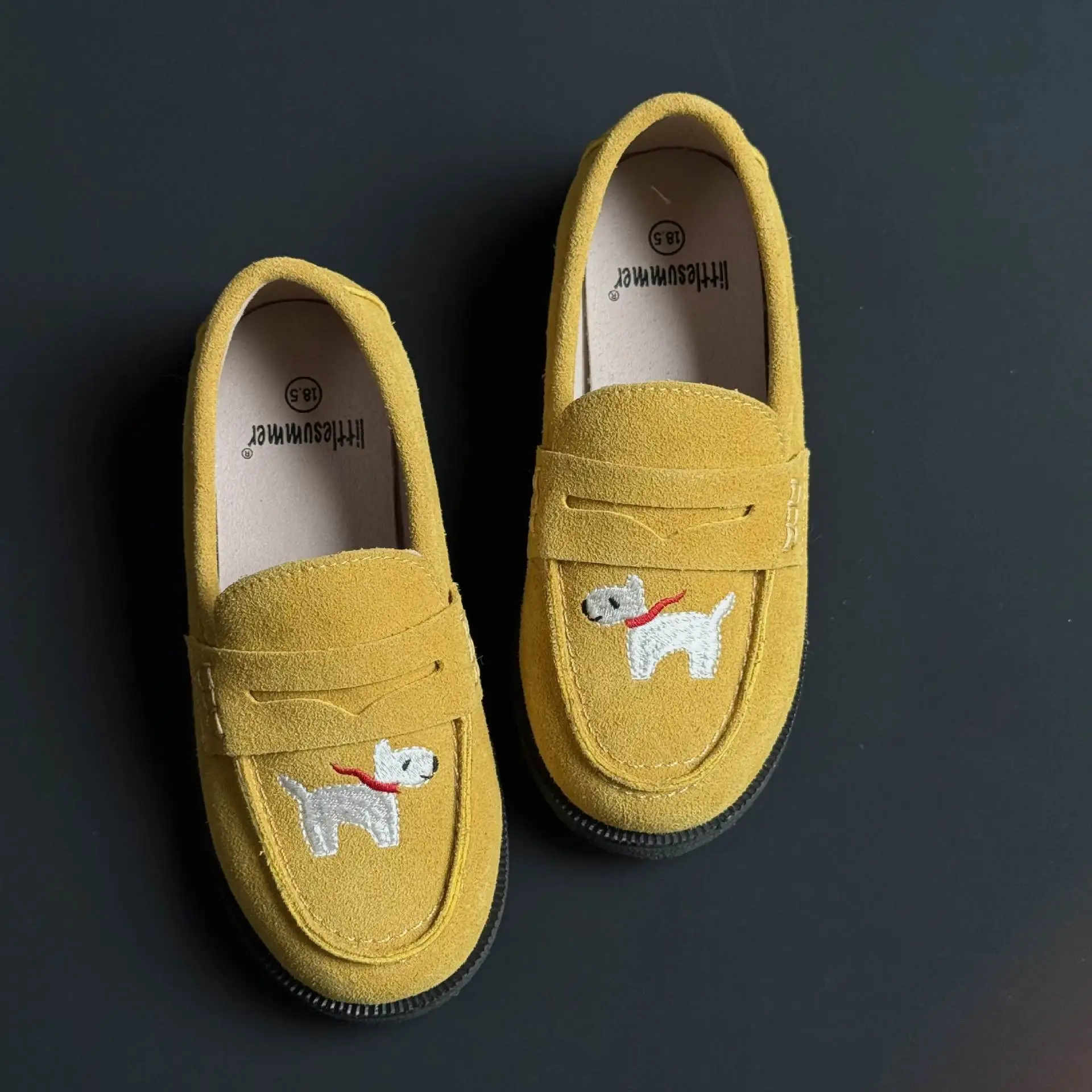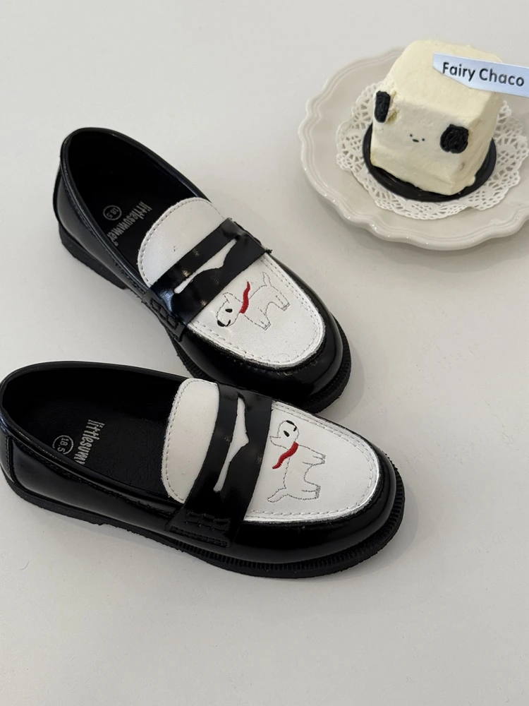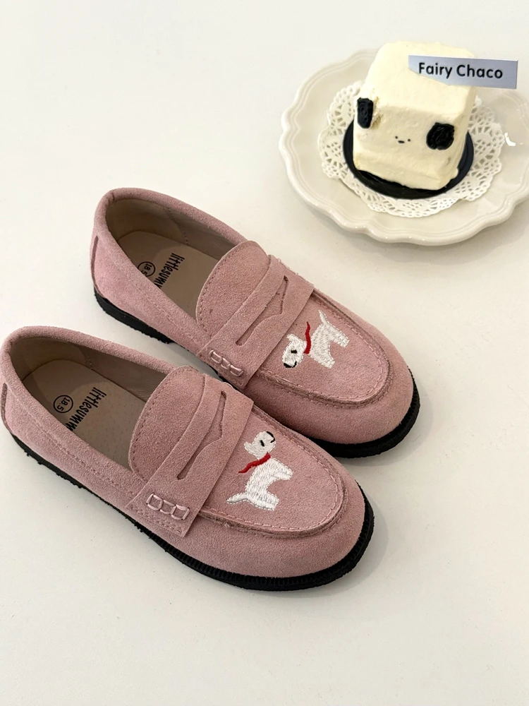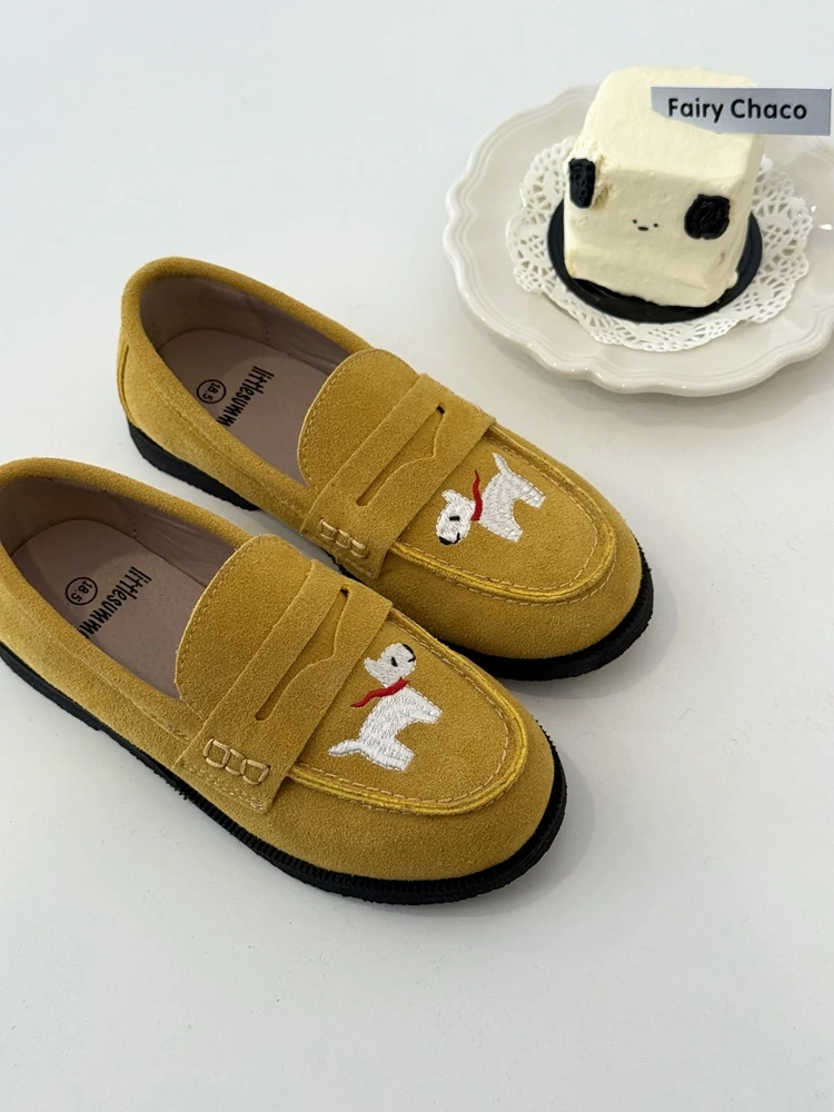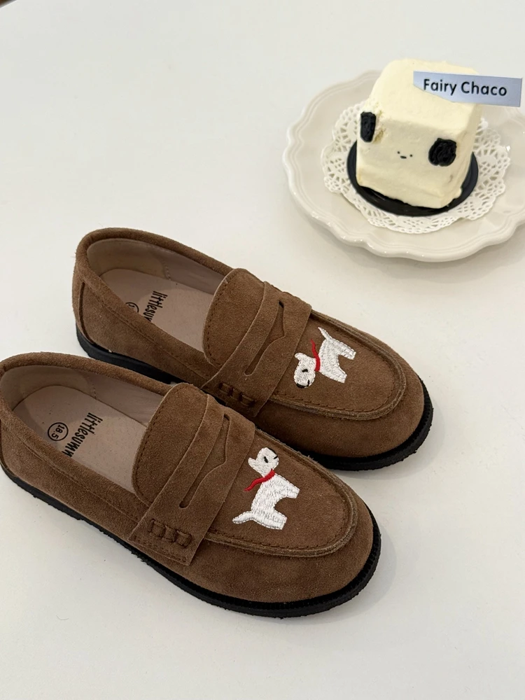جلد طبيعي الفتيات أحذية من الجلد أزياء التطريز جرو جلد البقر الأطفال المتسكعون الربيع أطفال بنين أحذية المدرسة