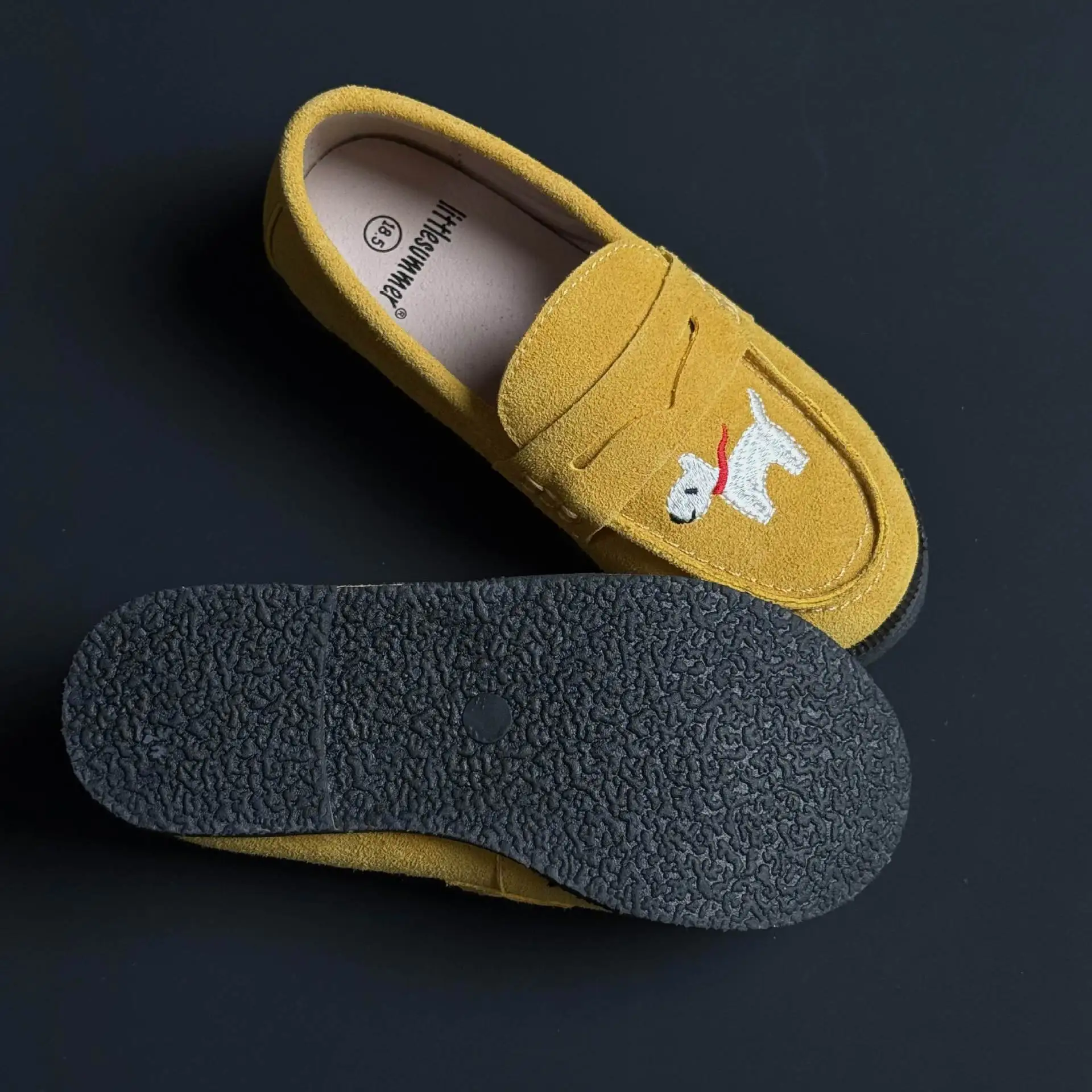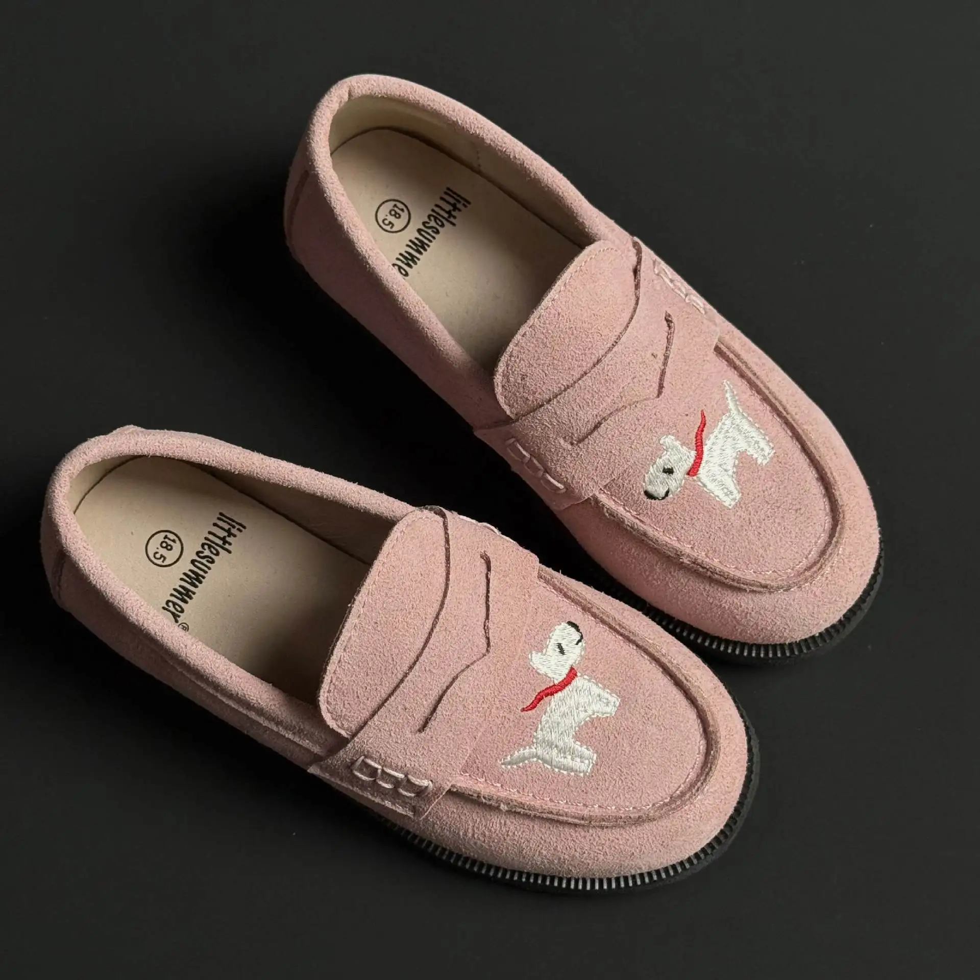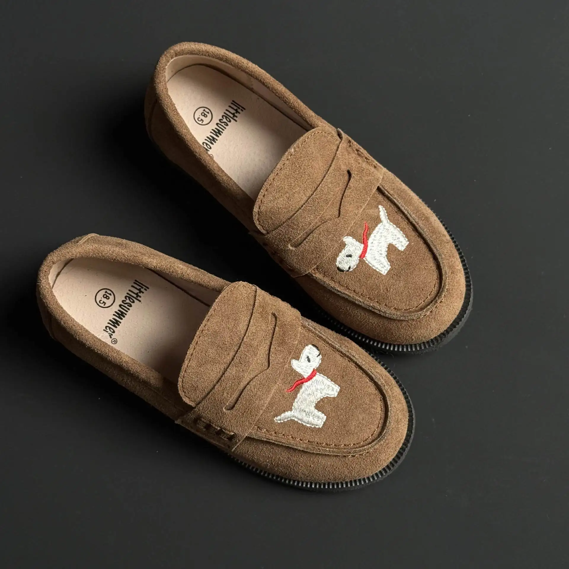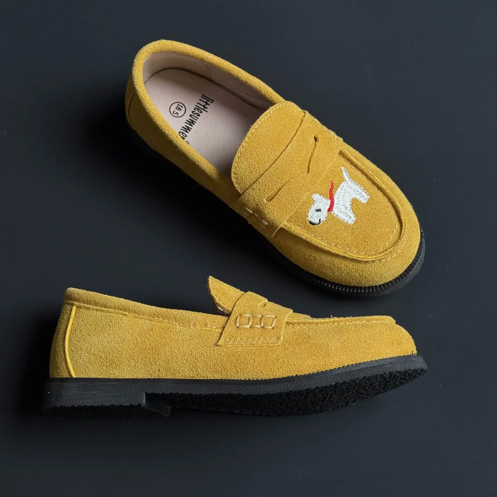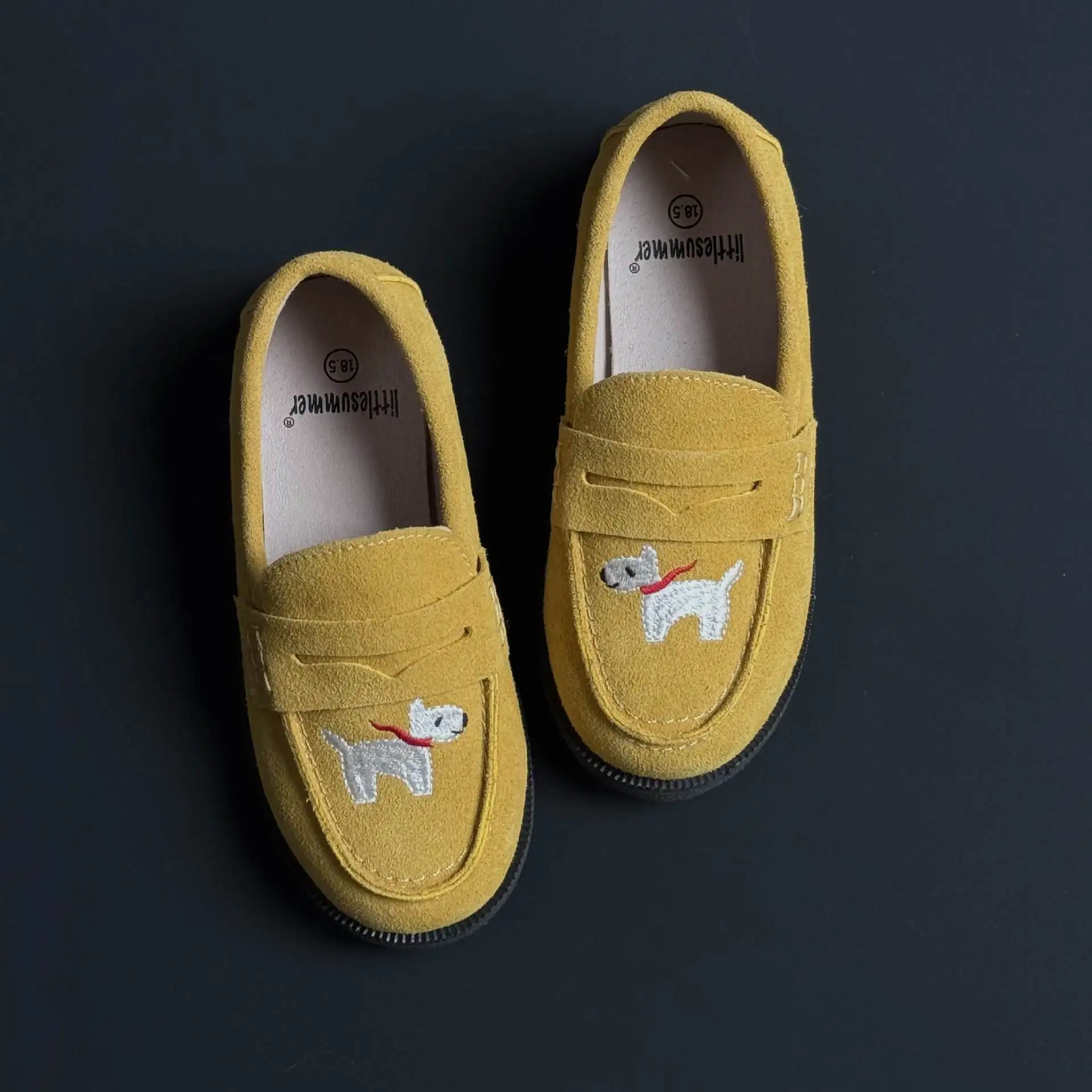 جلد طبيعي الفتيات أحذية من الجلد أزياء التطريز جرو جلد البقر الأطفال المتسكعون الربيع أطفال بنين أحذية المدرسة