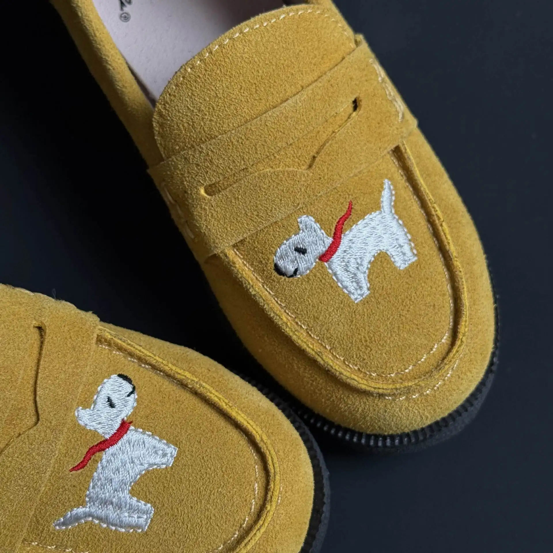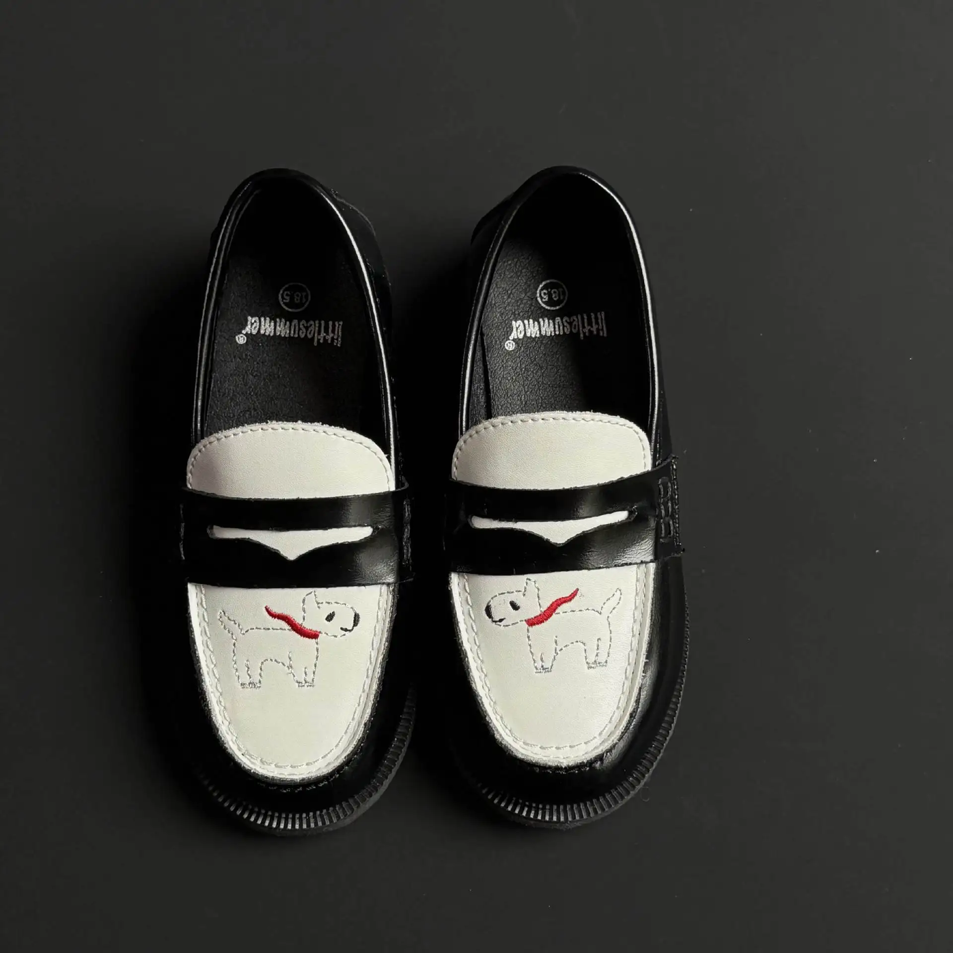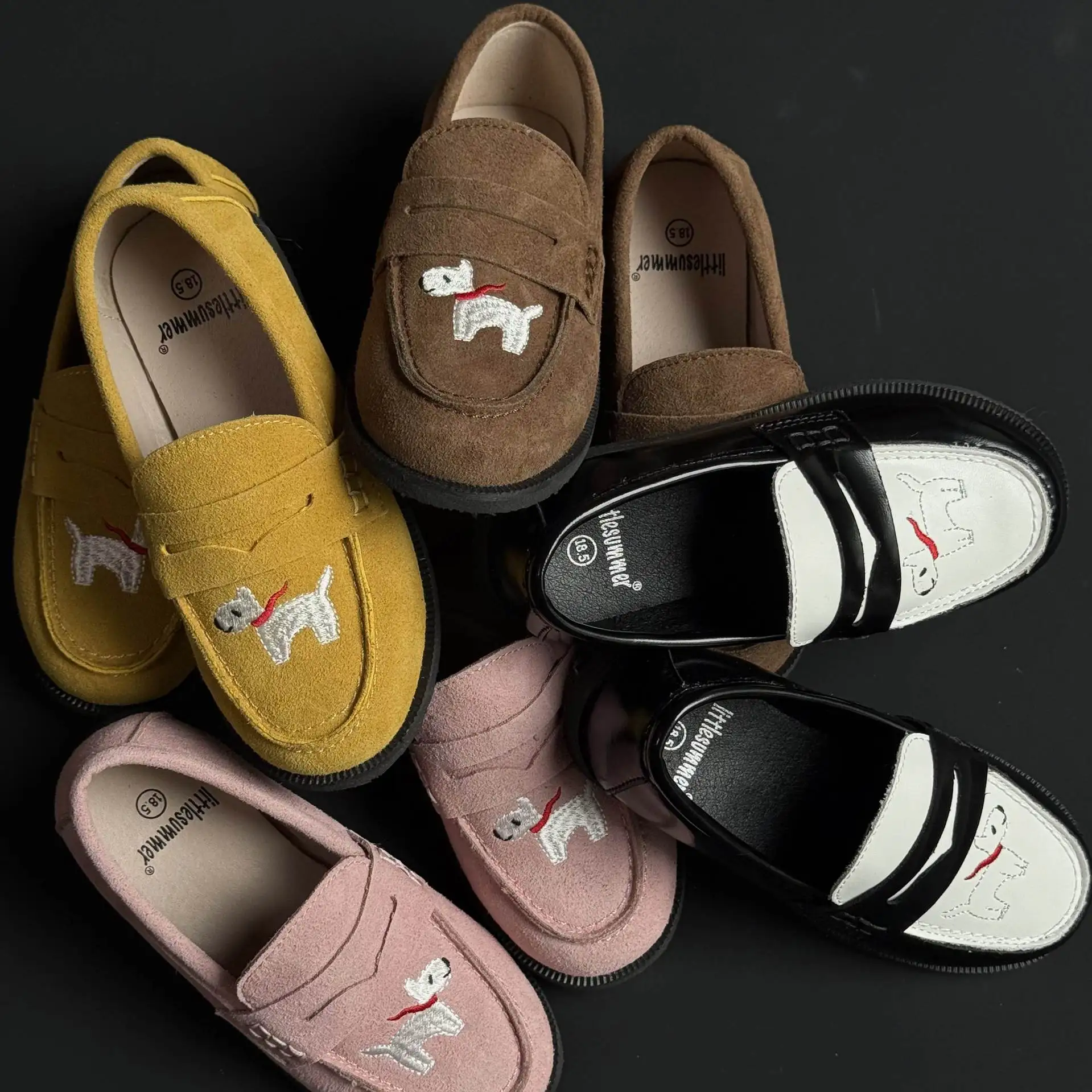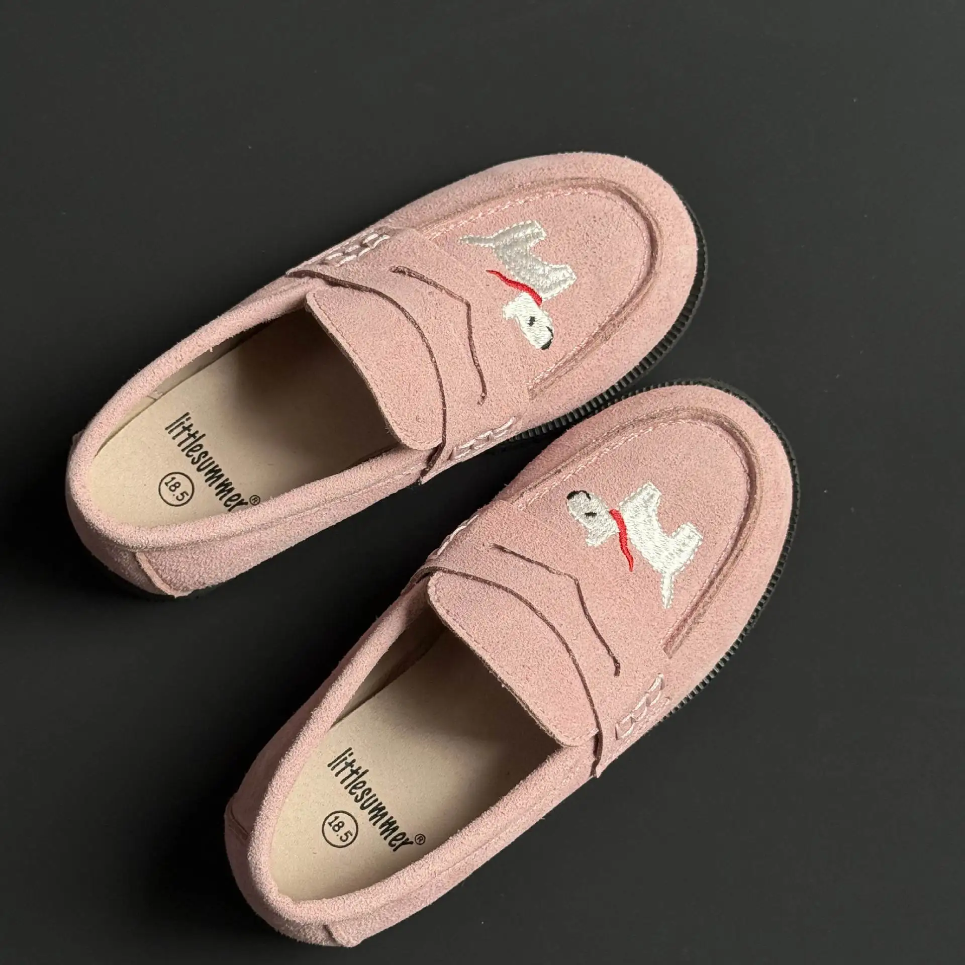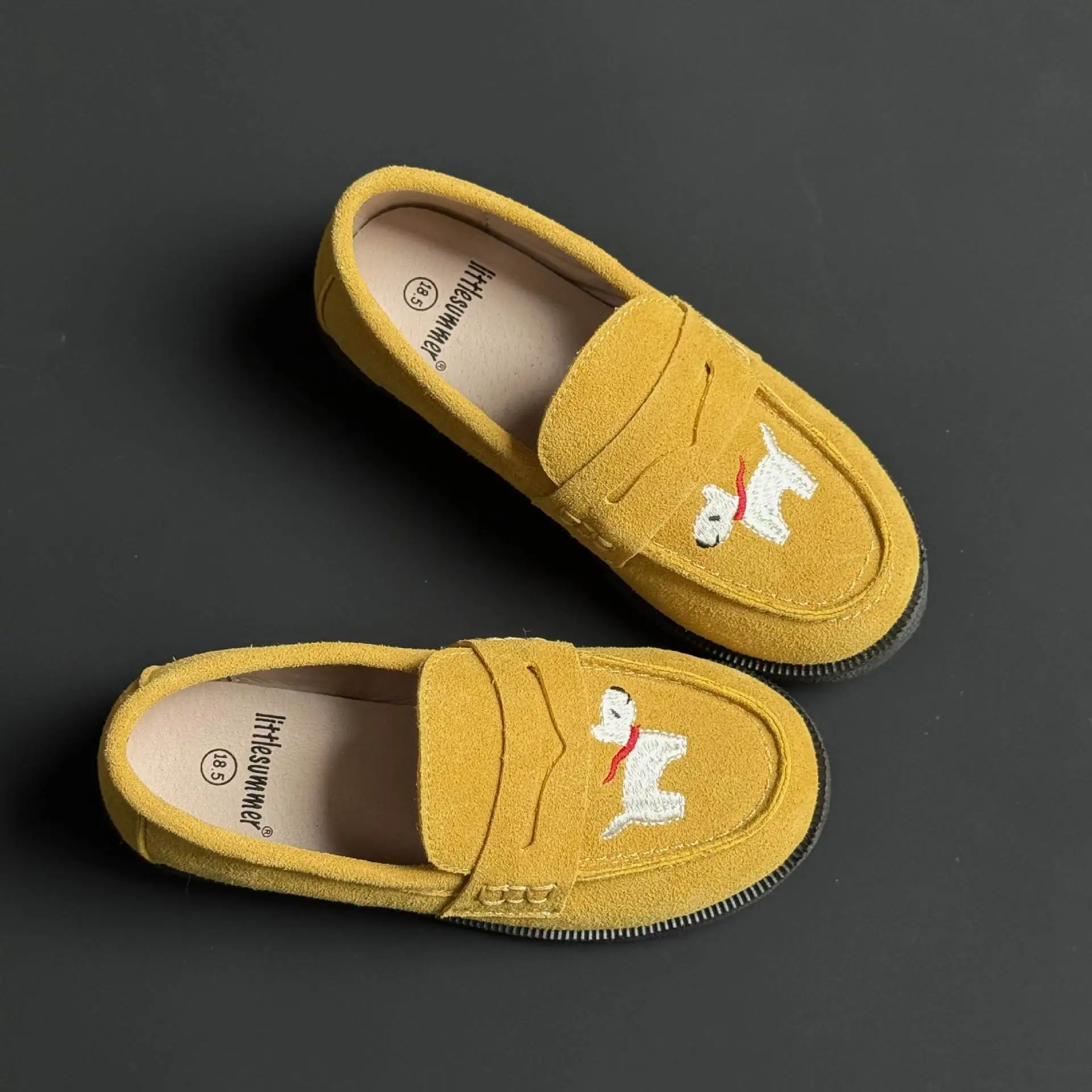 جلد طبيعي الفتيات أحذية من الجلد أزياء التطريز جرو جلد البقر الأطفال المتسكعون الربيع أطفال بنين أحذية المدرسة