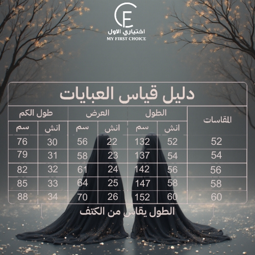 تأتي العباية بقصة كلوش كاملة تعطي مظهراً واسعاً وراقياً، مع تقفيلة زرار كامل لسهولة الارتداء.