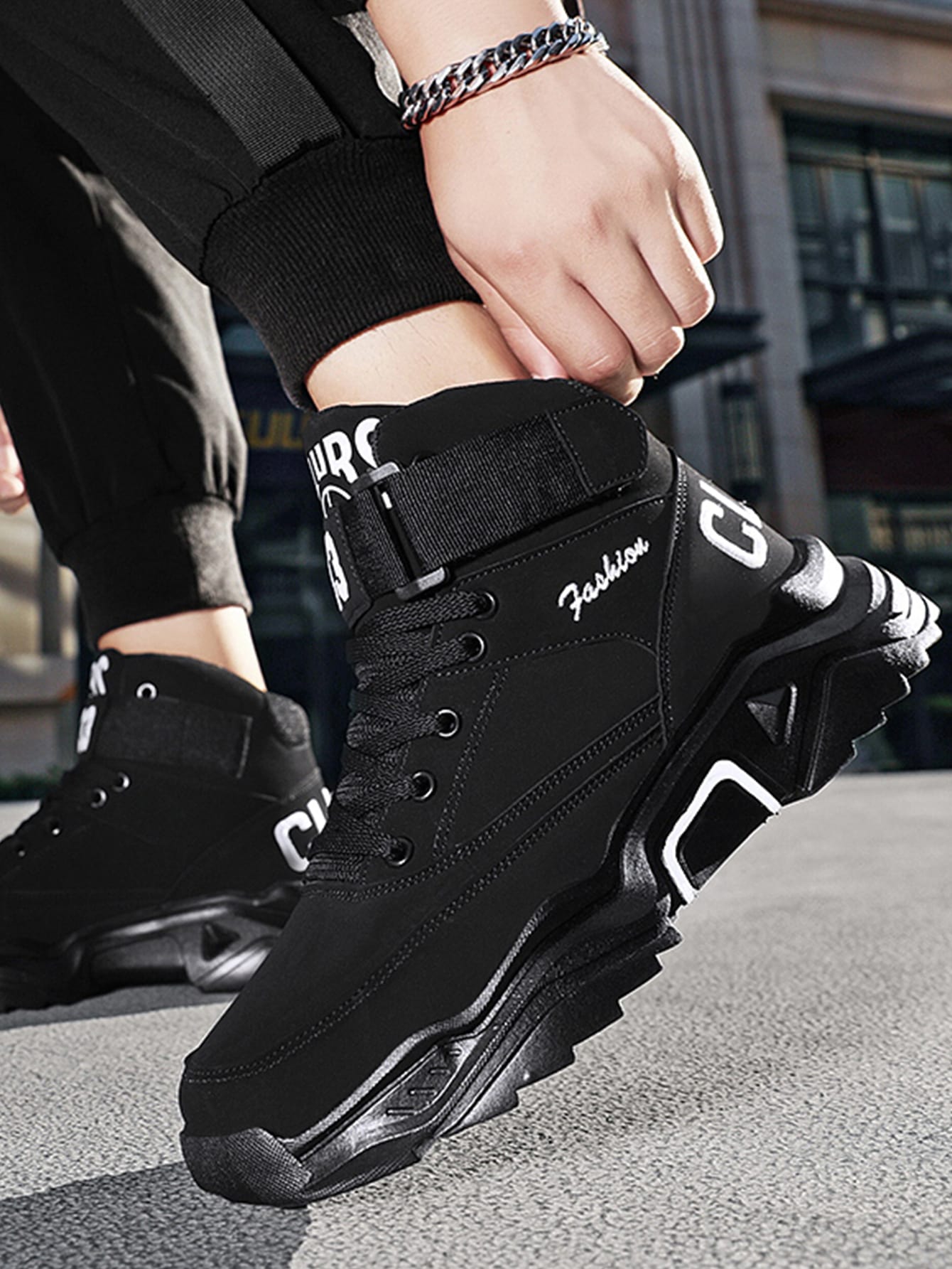 حذاء رياضي بنعل سميك مع خطوط على الجوانب