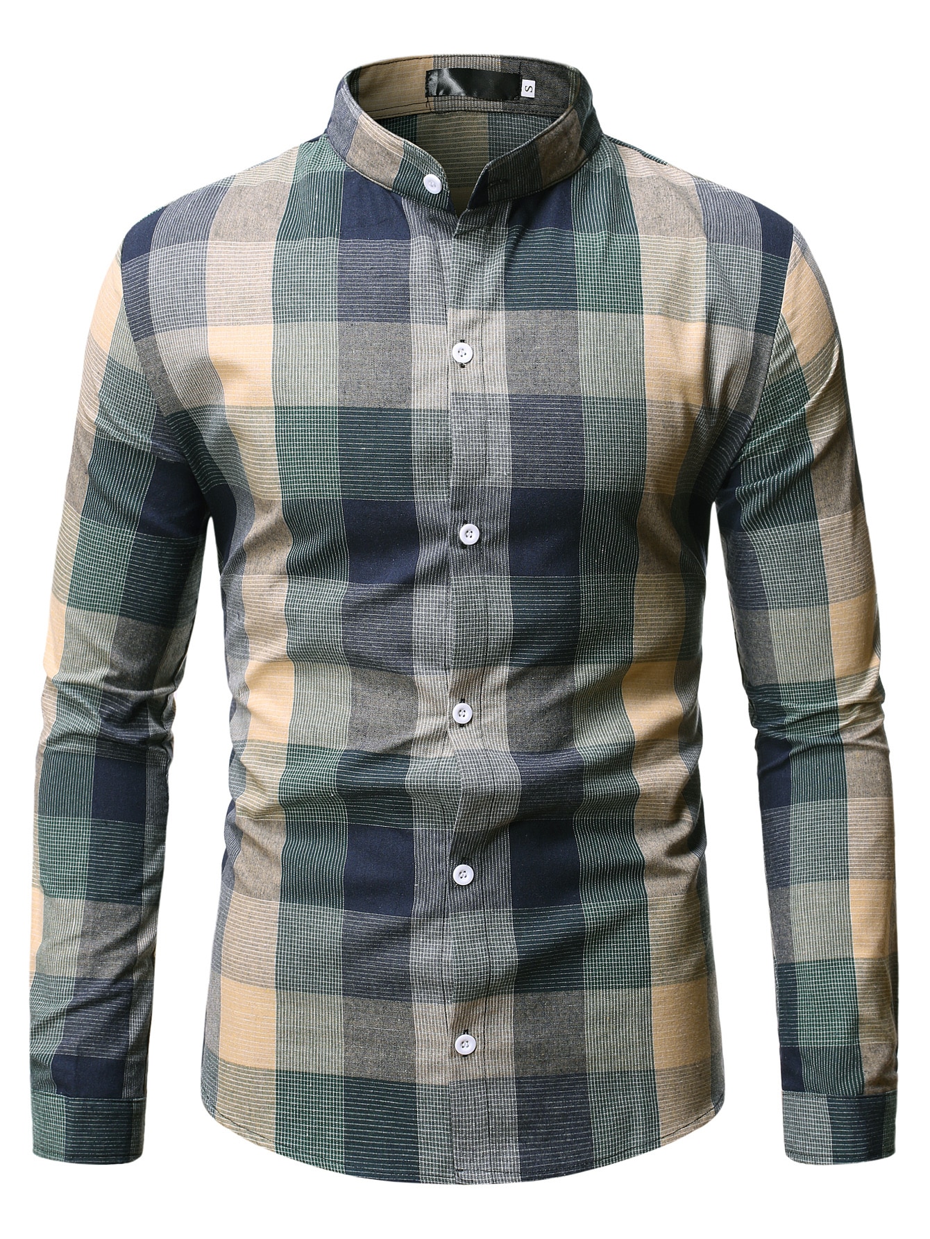 Manfinity Mode قميص رجالي كاجوال أعمال للتنقل، قميص رجالي بياقة عالية لون سادة أزرار كم طويل، قميص ر