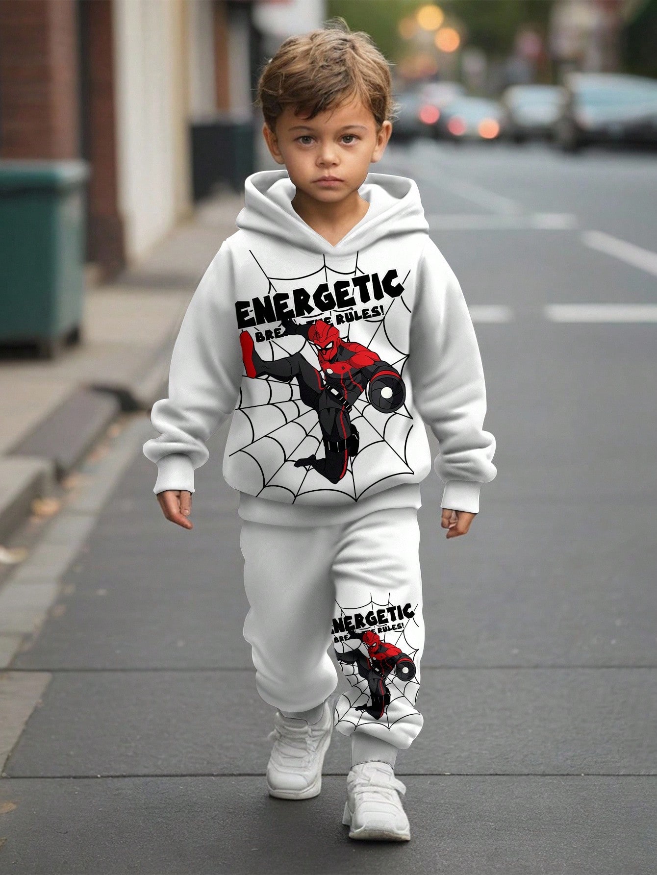 بدلة ملابس رياضية فضفاضة للشباب تصميم محدد الأنماط كنزة هوديةطويلة الأكمام، مريحة للخريف / الش