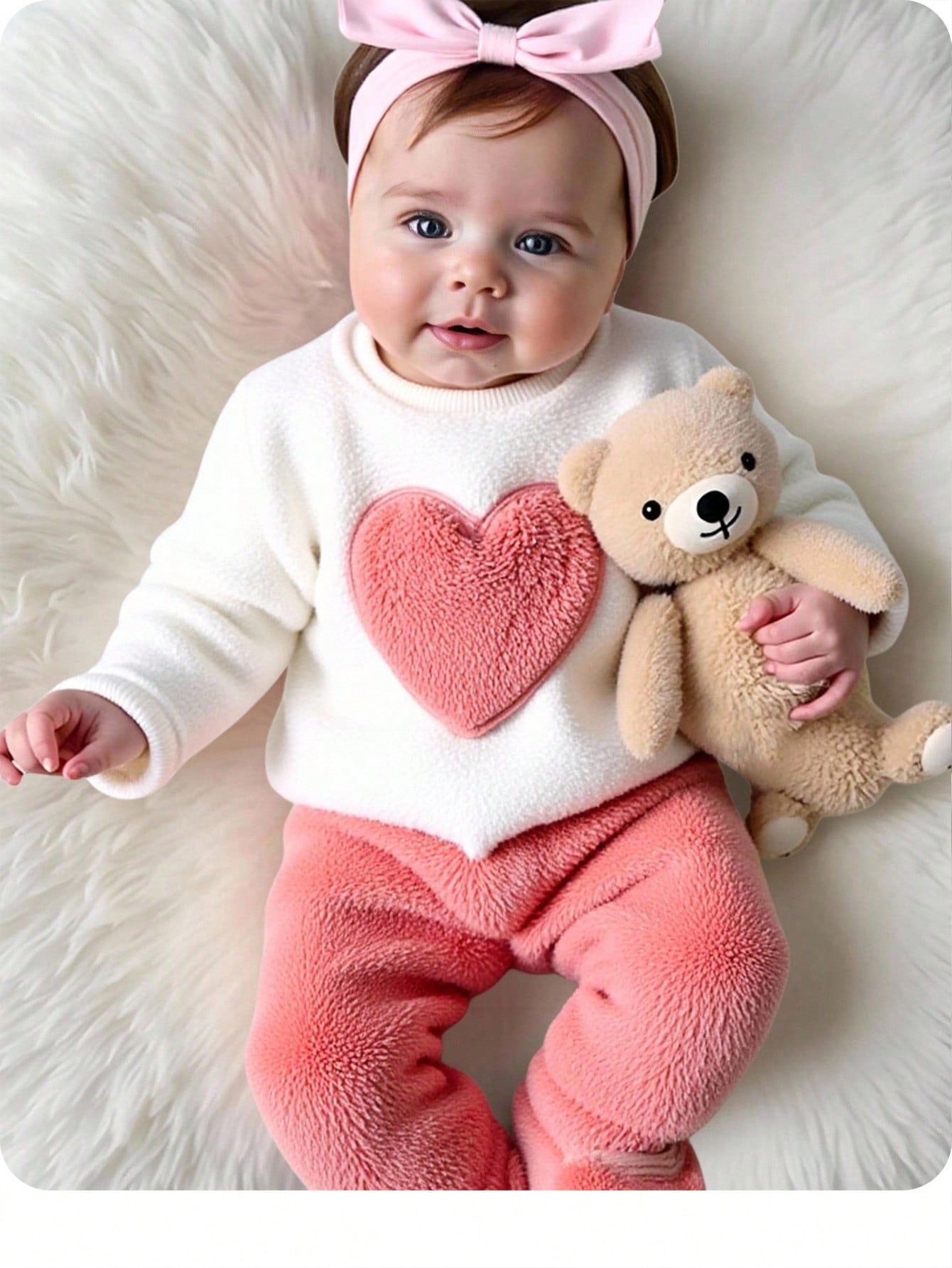 مجموعة بلوزة وبنطلون من قطعتين للمواليد الجدد، بتصميم بسيط وجميل من قماش مخمل ثنائي الوجه بنقشة قلب،