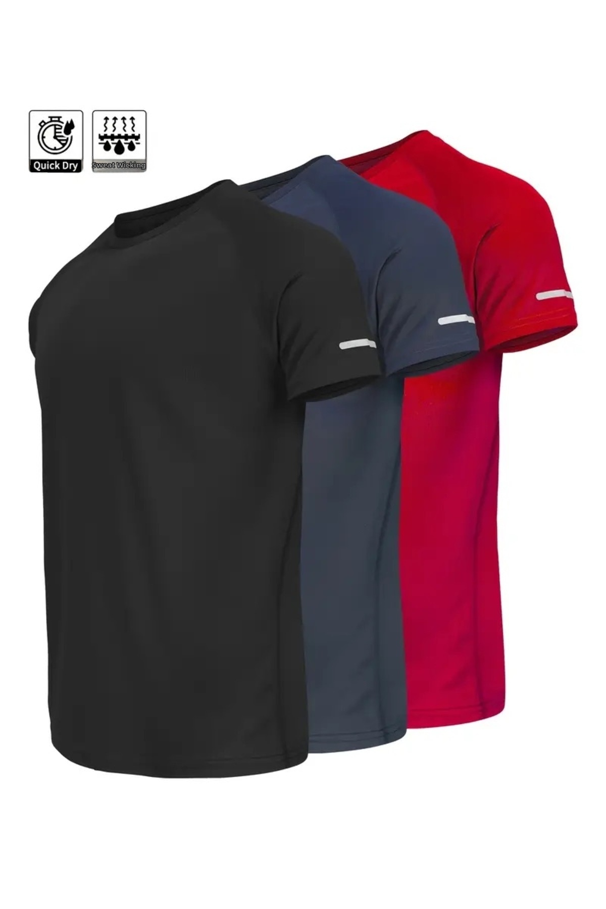 تي شيرت رياضي بأداء فني رياضي مكون من 3 قطع مع ميزات سريعة الجفاف