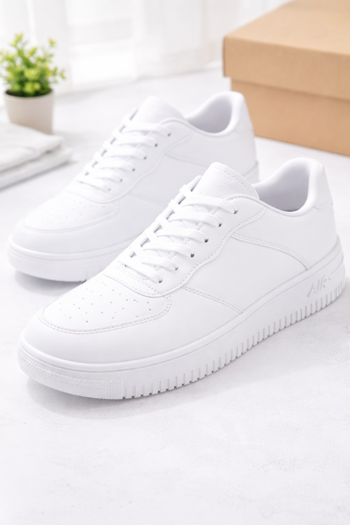حذاء رياضي أبيض للجنسين بنعل هوائي حذاء رياضي كاجوال باللون الأبيض