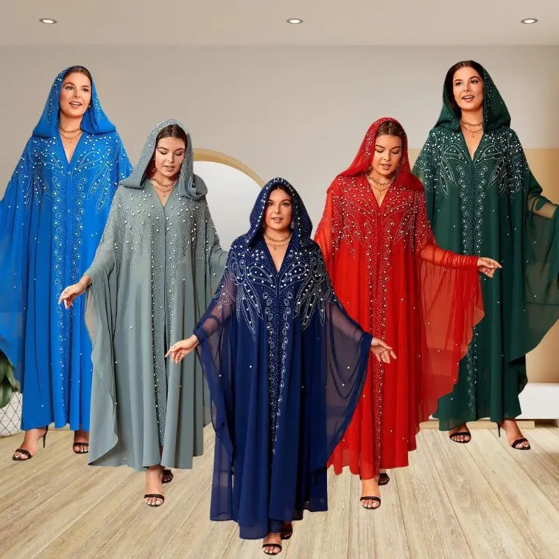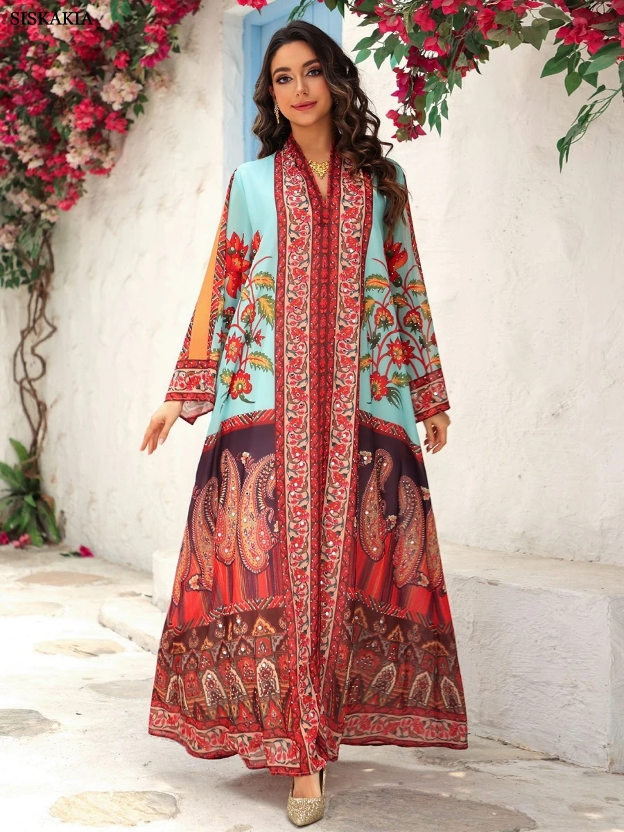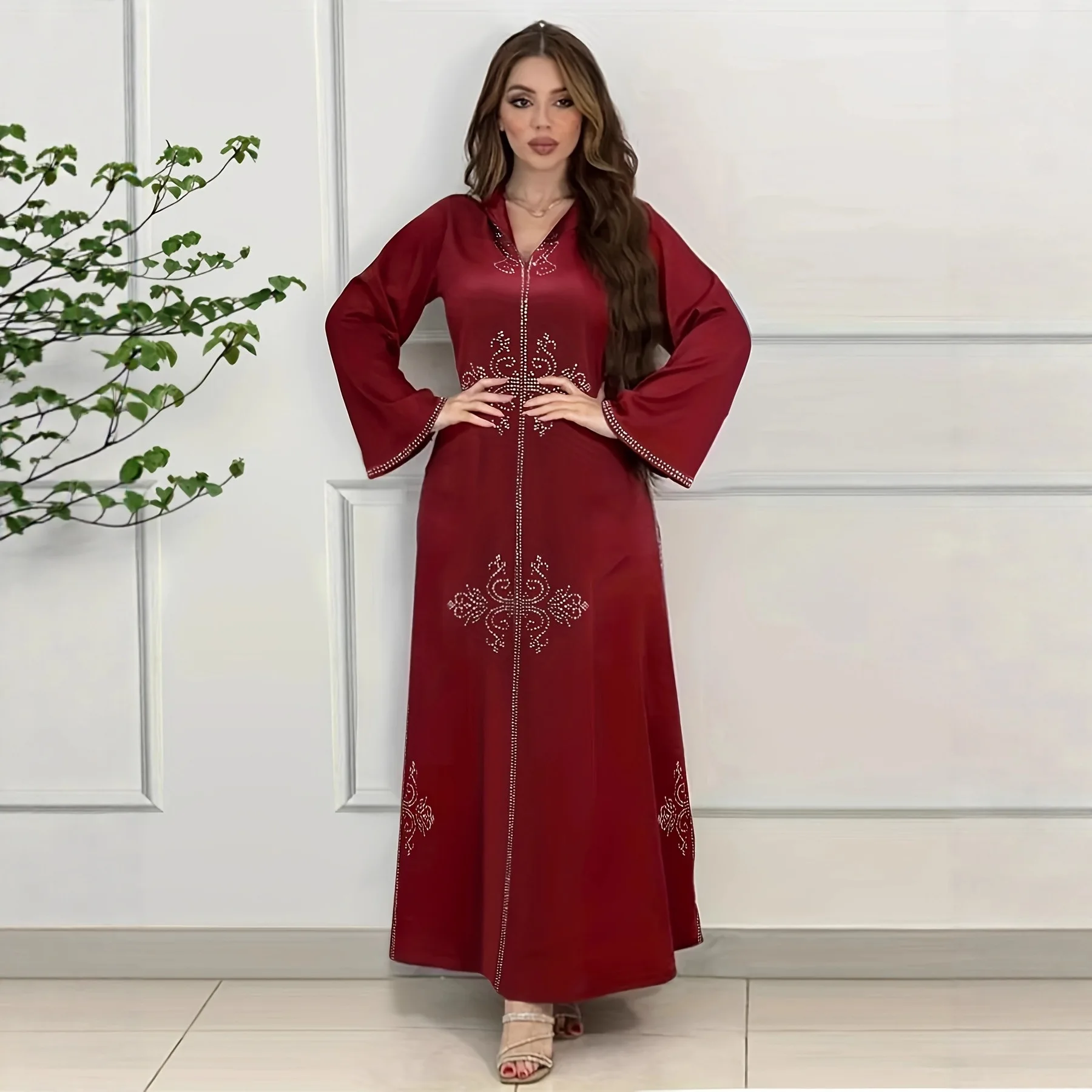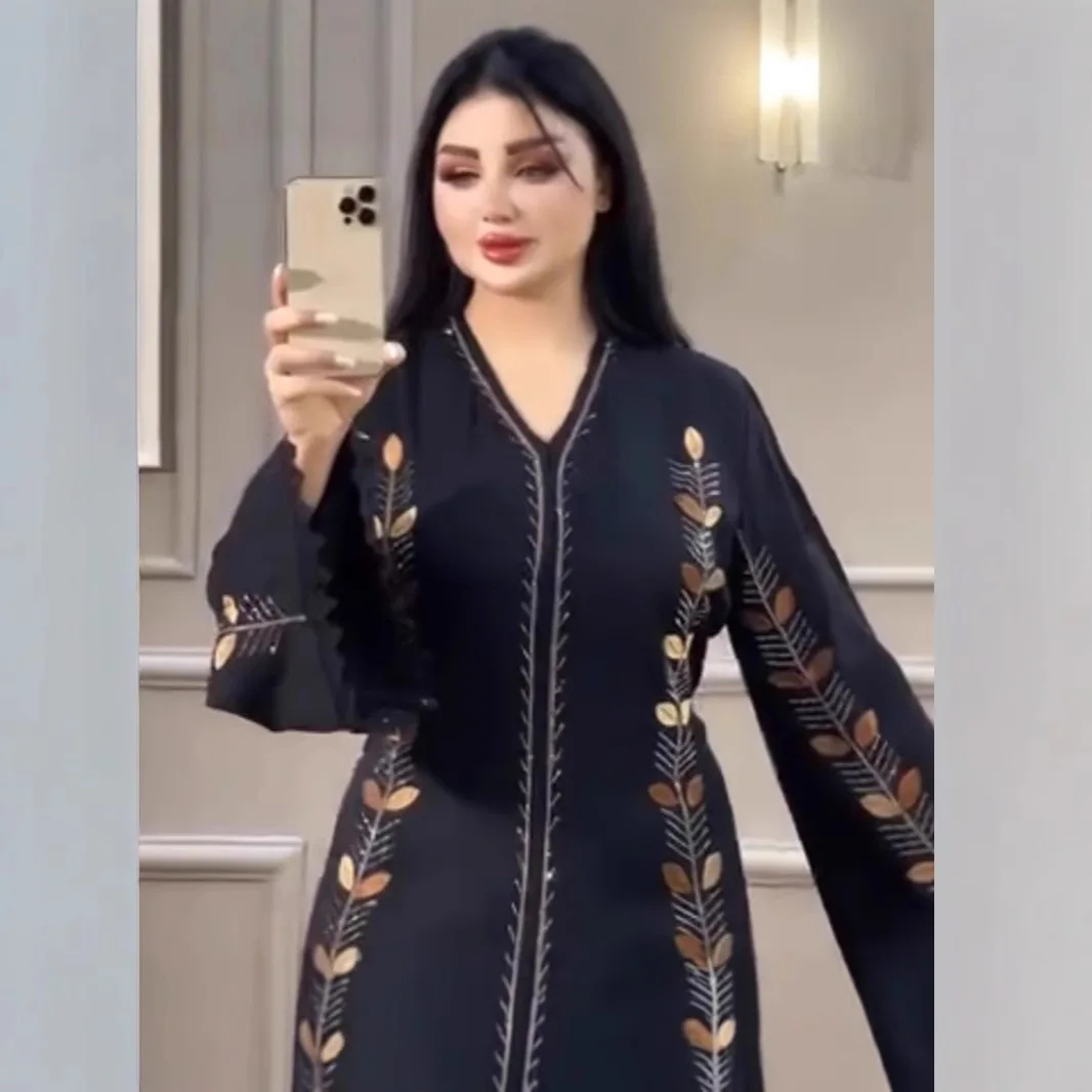 جلابية طويلة بتفاصيل لامعة وقصة واسعة