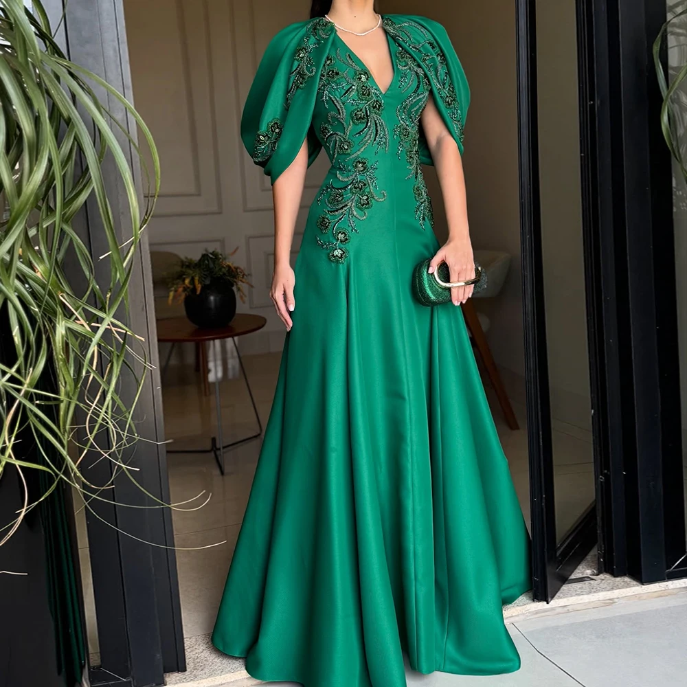 جلابية خضراء بطقم قطعتين وتفاصيل تراثية