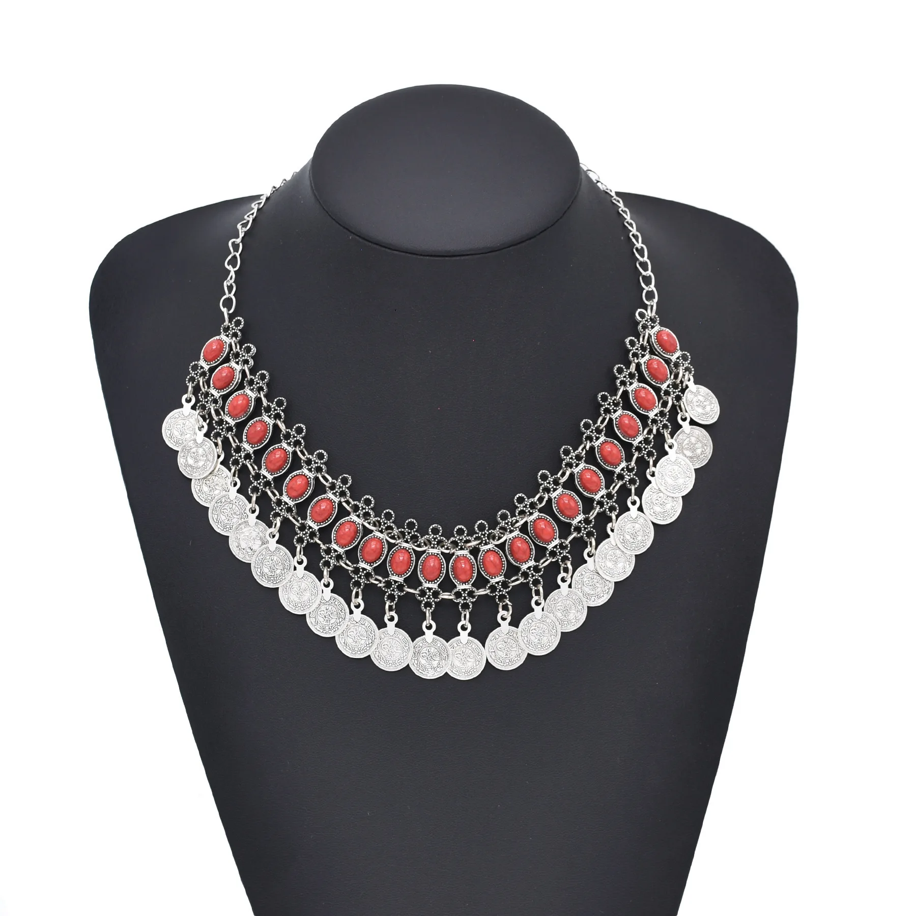 تاج جبين فضي بعملات متدلية وأحجار ملونة – تصميم تراثي أنيق