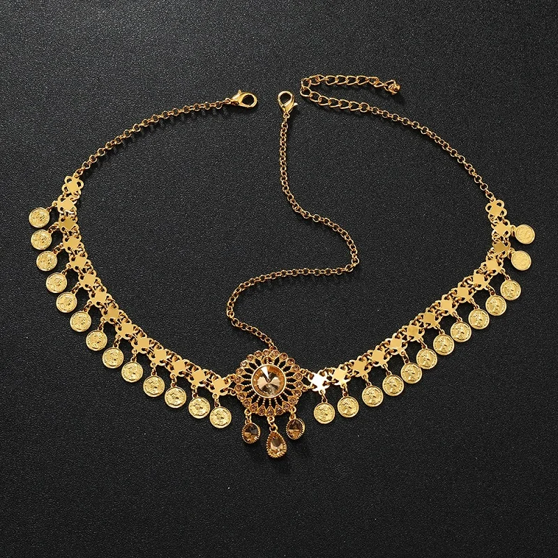 تاج رأس ذهبي متعدد السلاسل بعملات متدلية – تصميم شرقي فاخر