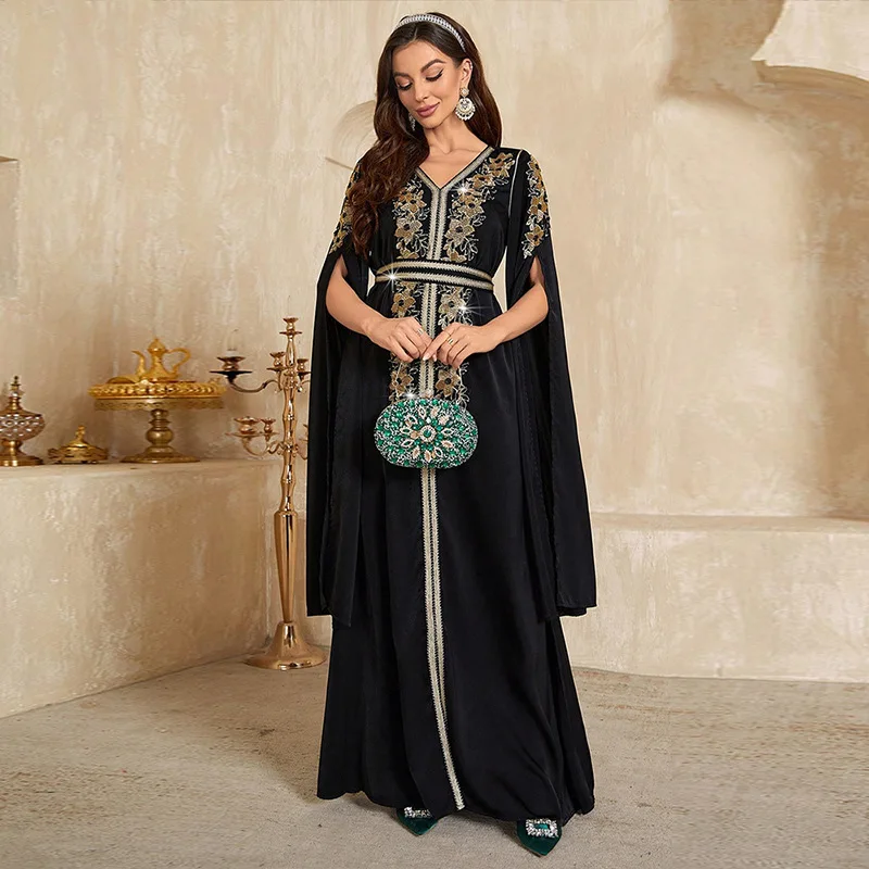 جلابية أوراق بنقش ذهبي فاخر بحزام