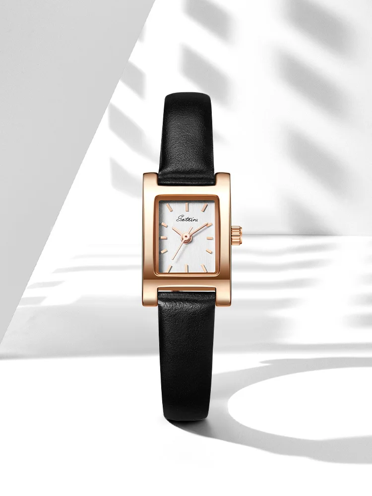 ساعة نسائية مربعة بتصميم أنيق – سوار جلدي أو شبكي