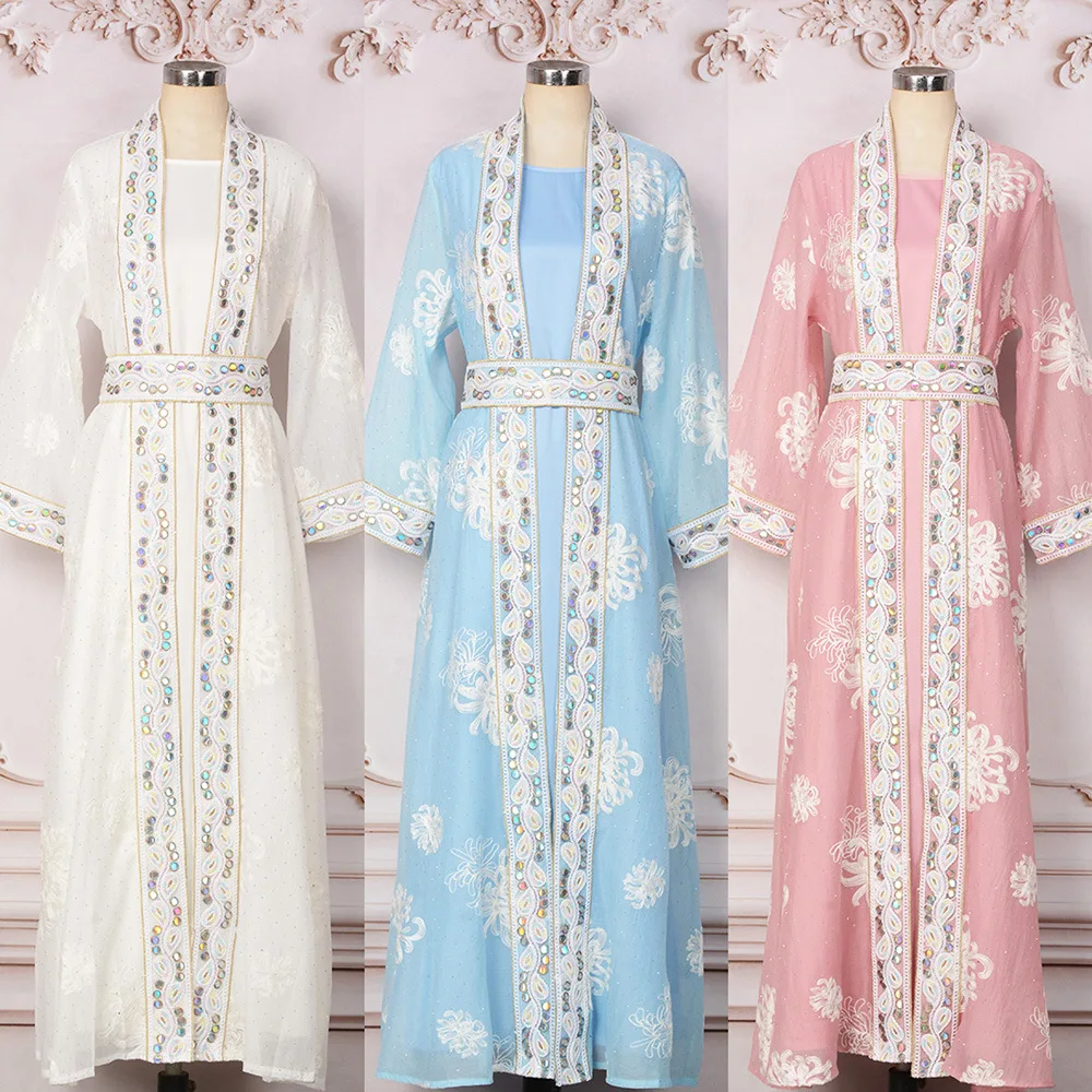 جلابية طويلة بتفاصيل مطرزة وحزام أنيق