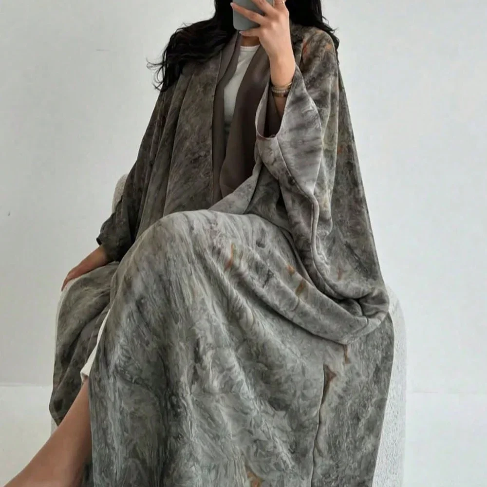 عباية رمادي رخامي – أناقة هادئة بلمسة عصرية