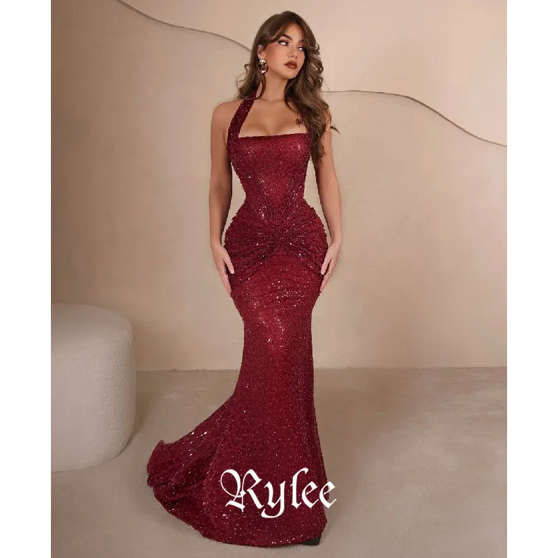 فستان سهرة خمري بتفاصيل دانتيل أنيقة