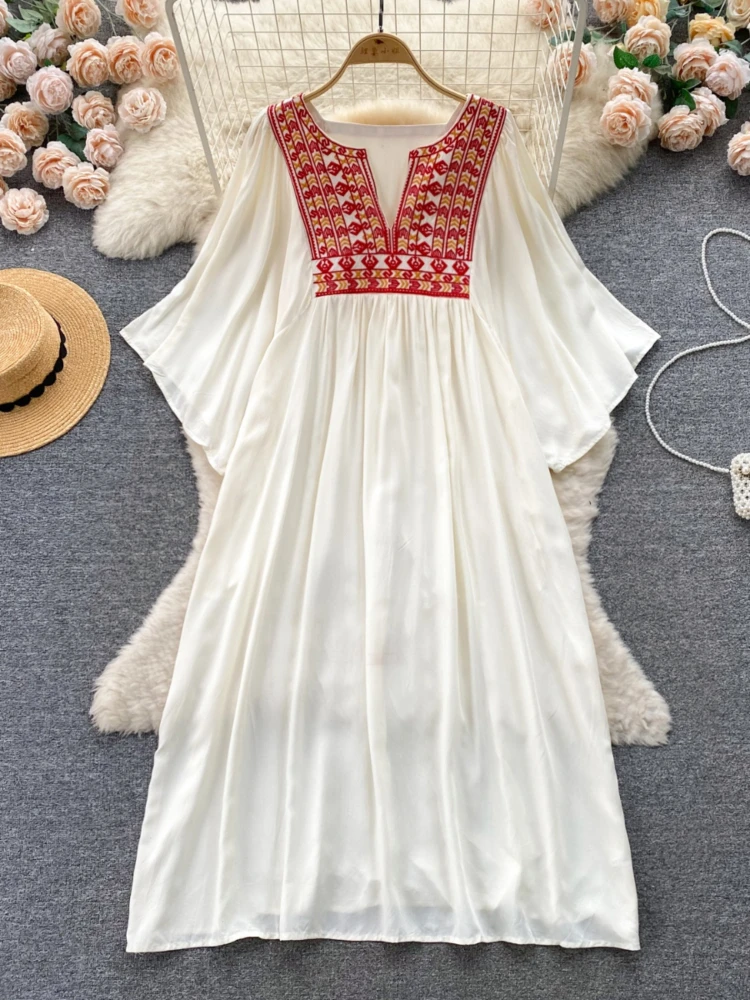 فستان طويل مورّد بتطريز صدري أنيق – ألوان متعددة