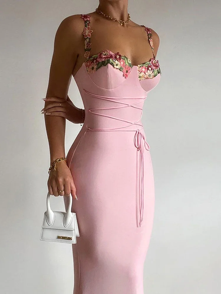 فستان أنثوي وردي بتفاصيل تطريز ناعمة